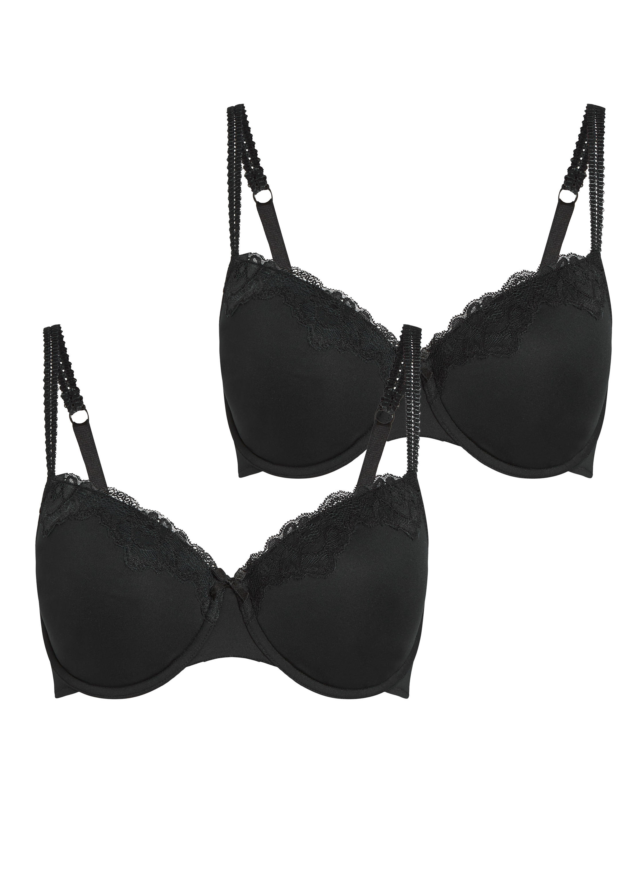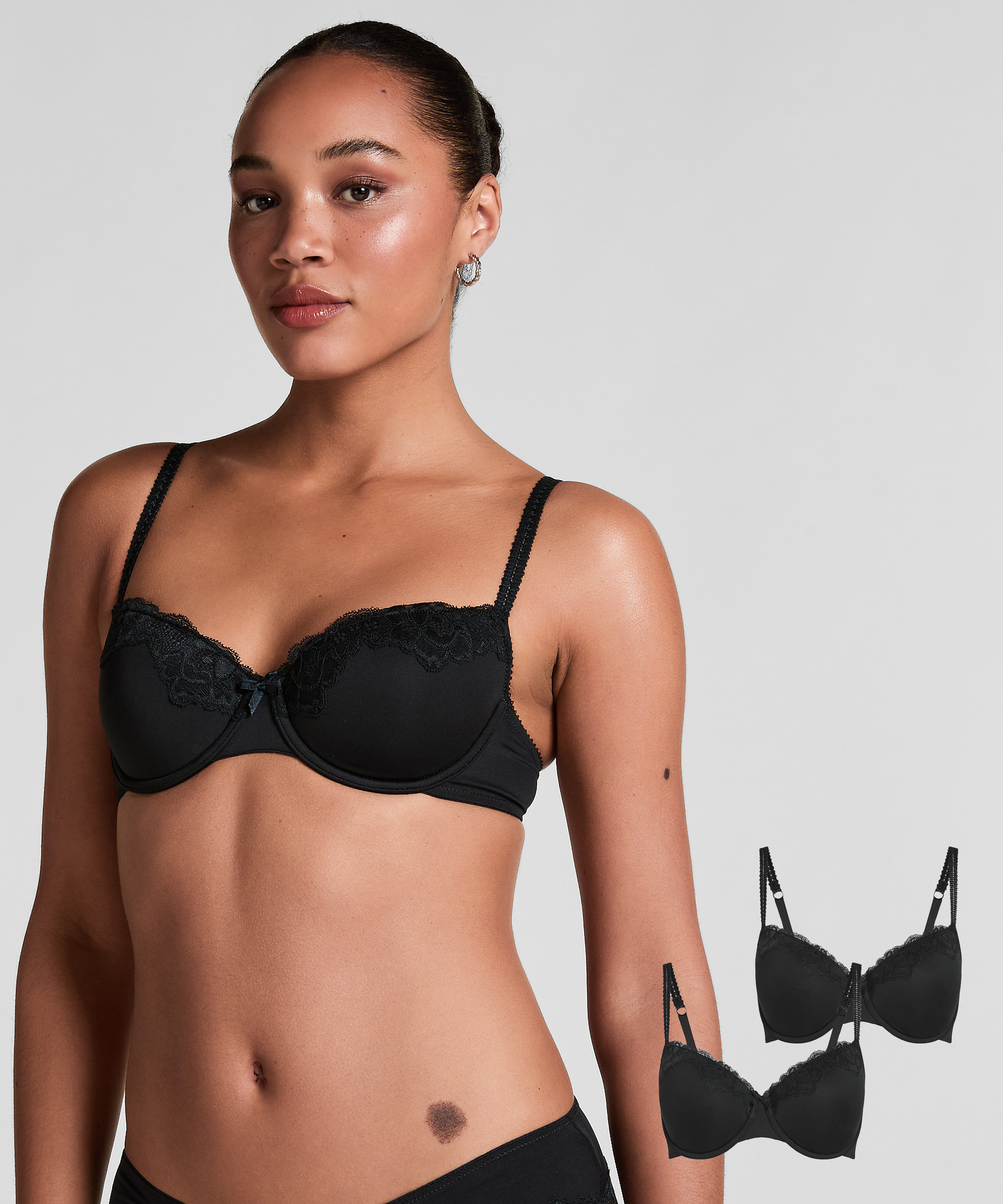 Met deze basis-bh's kun je niet misgaan! Gelukkig voor jou zijn ze nu verkrijgbaar in een 2-pack, zodat je nooit zonder komt te zitten! Ze zijn afgewerkt met een schattig strikje tussen de cups, en kunnen met elk van je favoriete slipjes gecombineerd worden!