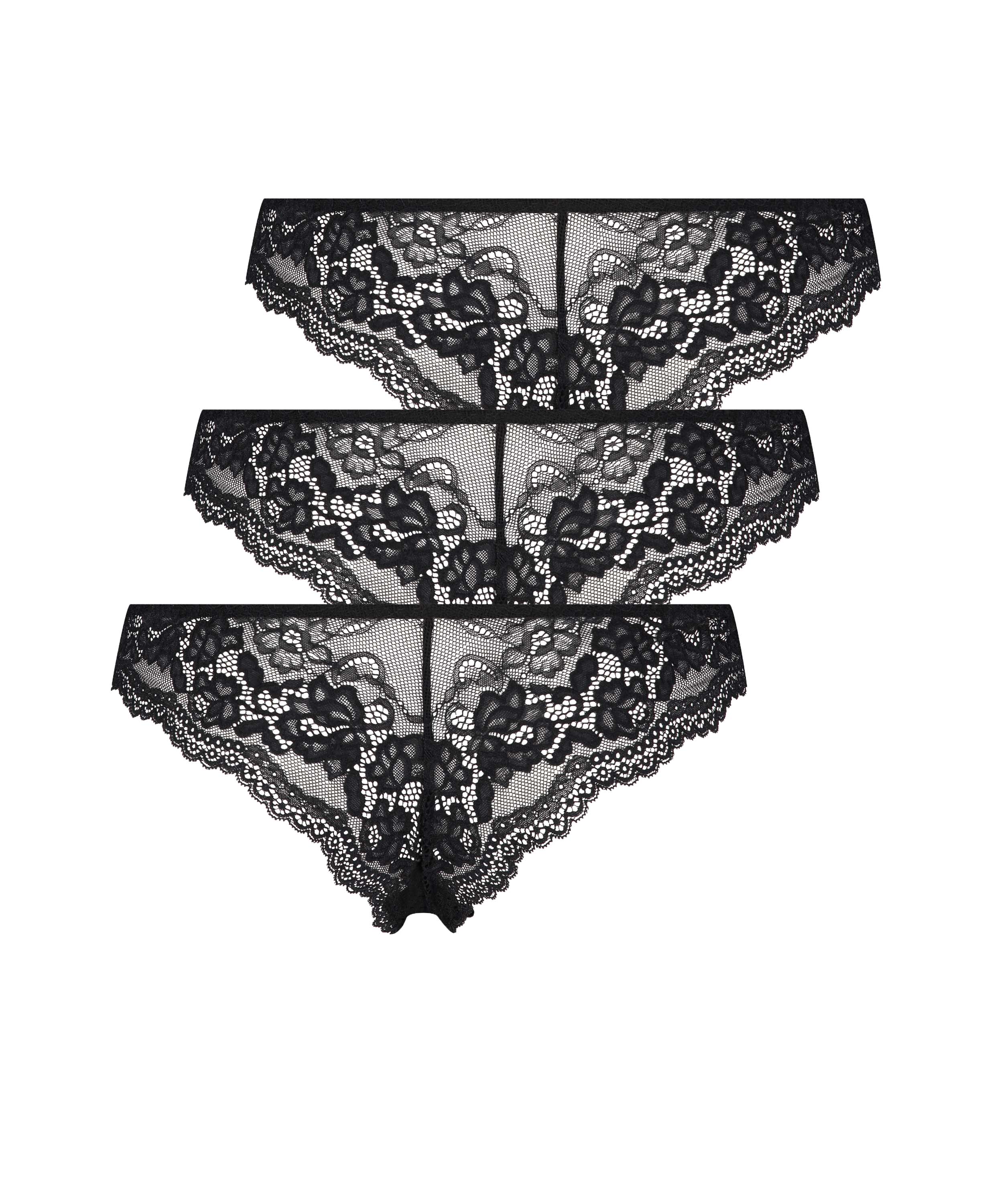 Voel je sexy in deze brazilians! Ze zijn volledig afgewerkt met kant en heeft een klein strikje op de voorkant als extra detail. Handig in een 3-pack, zo zie je er elke dag fabulous uit.