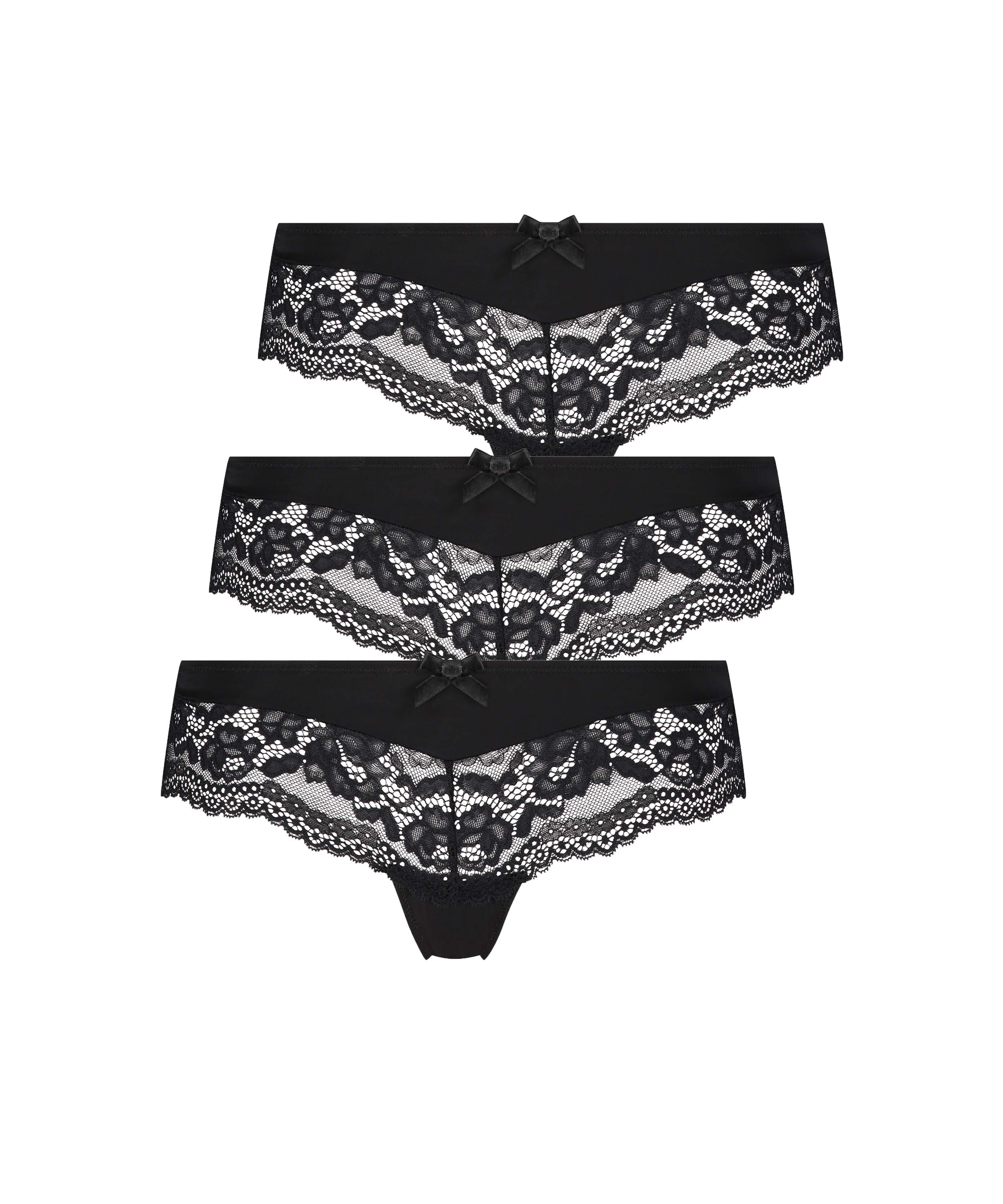 Hoe leuk is deze brazilian short? Hij bevat veel kant en een leuk strikje aan de voorkant. Handig verpakt in een 3-pack!