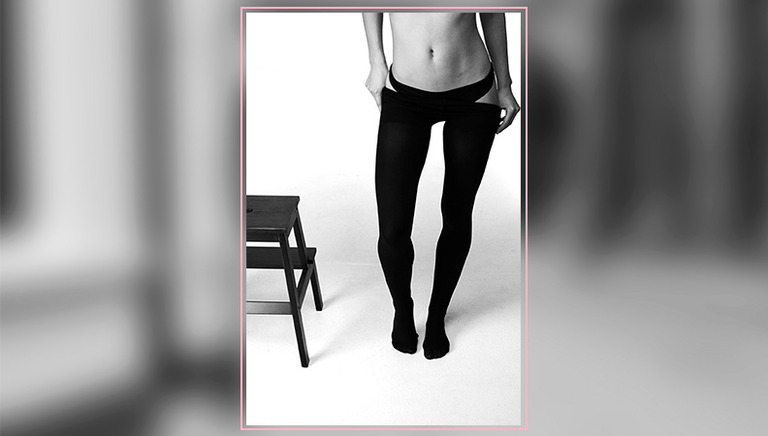 Zo kun je heel makkelijk het puntje van je voet in het opgerolde deel van de panty doen. Trek de panty voorzichtig over je hiel. Herhaal dit voor je andere voet.
