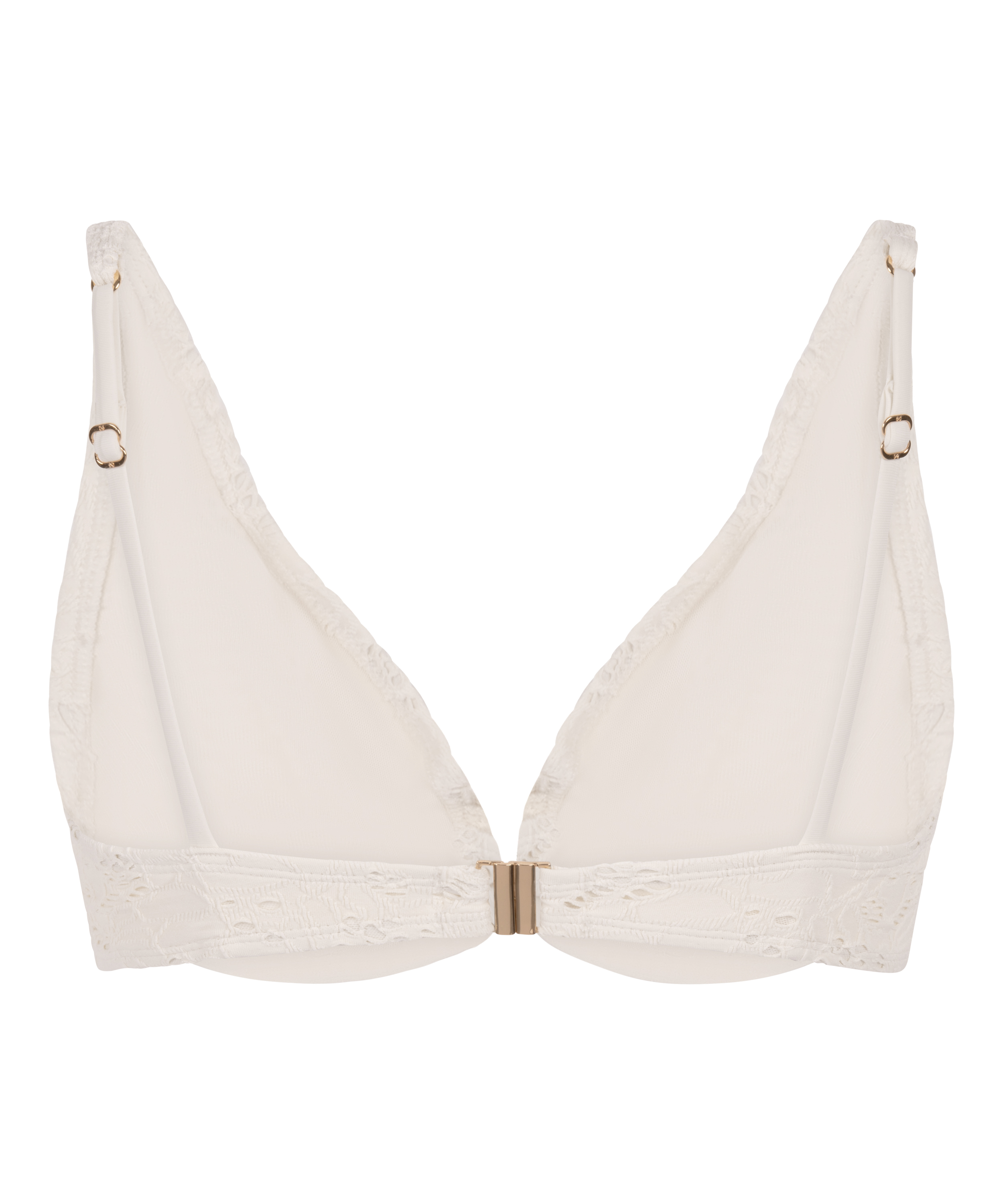 Deze gehaakte beugelbeha zonder vulling combineert ambachtelijke charme met een vleugje elegantie. Met verstelbare schouderbandjes, een veilige clipsluiting aan de achterkant en een gouden detail aan de voorkant biedt het zowel stijl als ondersteuning. Perfect voor wie houdt van een delicaat en toch opvallend lingeriestuk. Onze badkleding is ontwikkeld met hoogwaardige stoffen en voeringen voor een ondersteunende pasvorm. Wil je een meer relaxed fit, dan raden we aan een maat groter te kiezen.