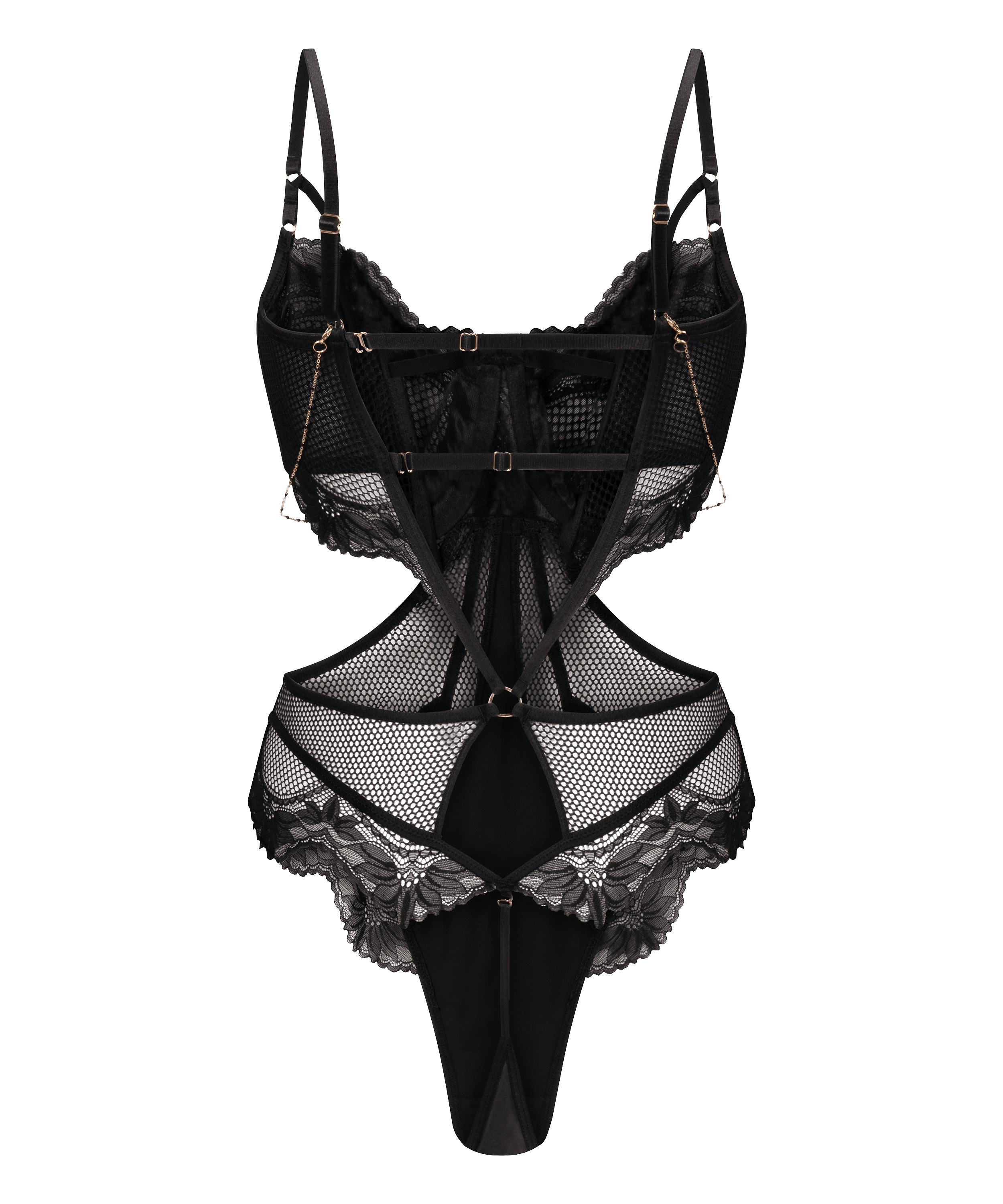 De Belladonna beugel body biedt een sexy vrouwelijke look met een dosis verleiding. Het model is gemaakt van zachte stoffen die elke centimeter van je lichaam flatteren en is afgewerkt met strategisch geplaatst semi-transparant kant en bandjes voor een verleidelijke afwerking. Onderdeel van onze Private collectie.