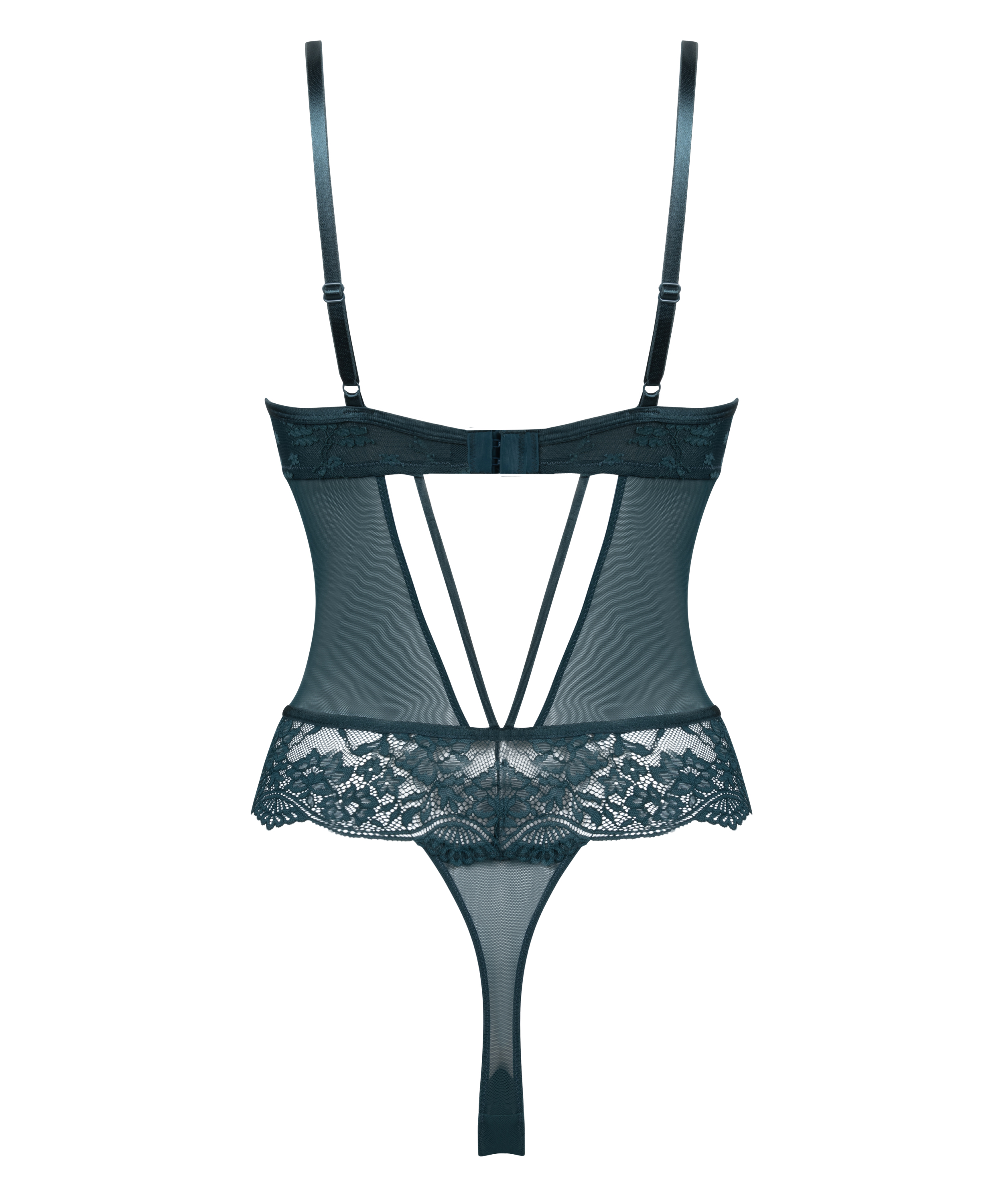 Onze body is een blikvanger die elegantie en zelfvertrouwen uitstraalt. Deze body met een betoverende mix van verfijnd kant en doorschijnend mesh die je silhouet prachtig benadrukt. Het blote detail op de rug voegt een gedurfde, geraffineerde touch toe en is perfect om een statement te maken.