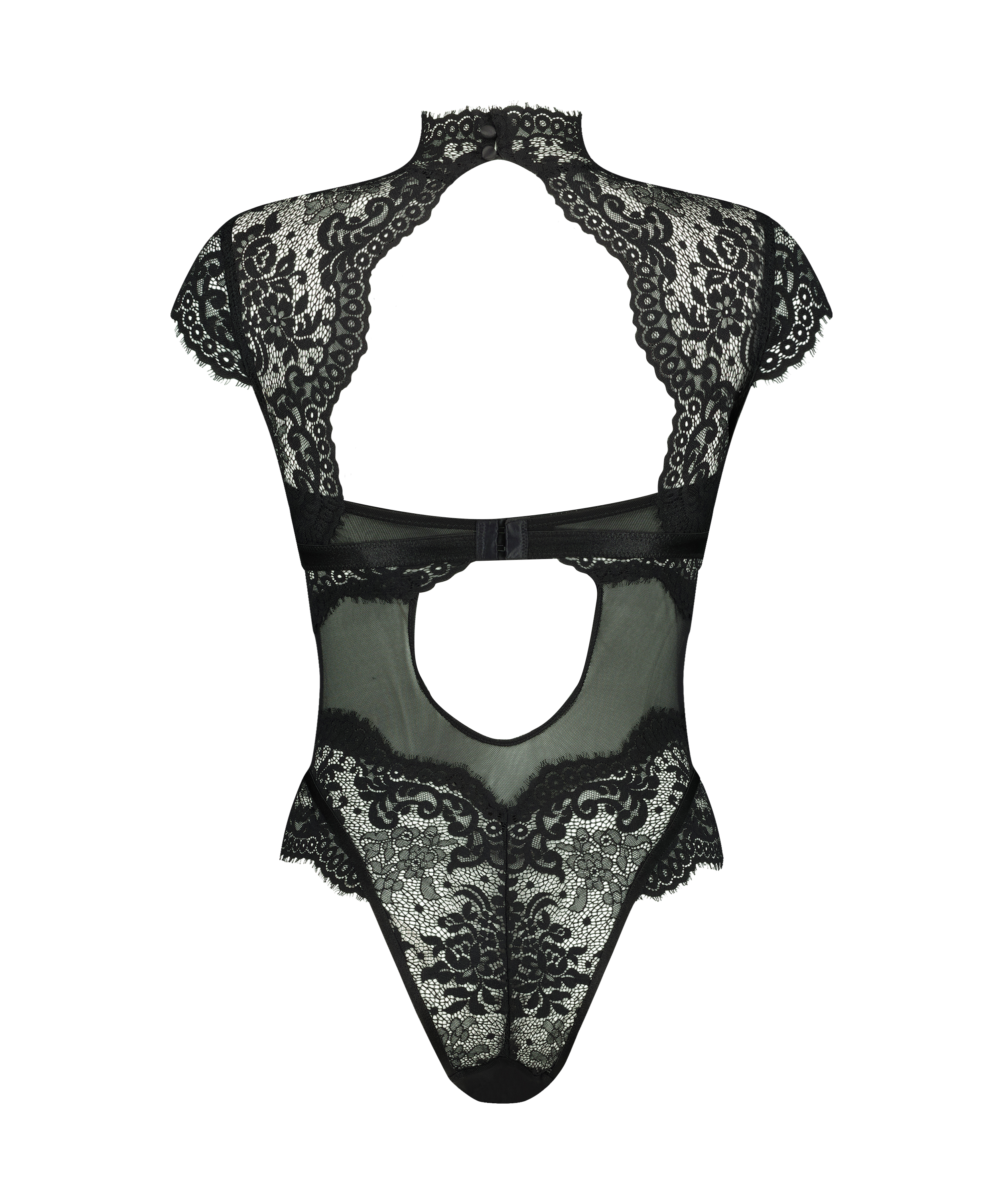 Geniet van een heerlijk avondje in deze prachtige body. Hij is afgewerkt met kanten details. Draag hem onder een jouw favoriete kimono voor een pracht outfit.