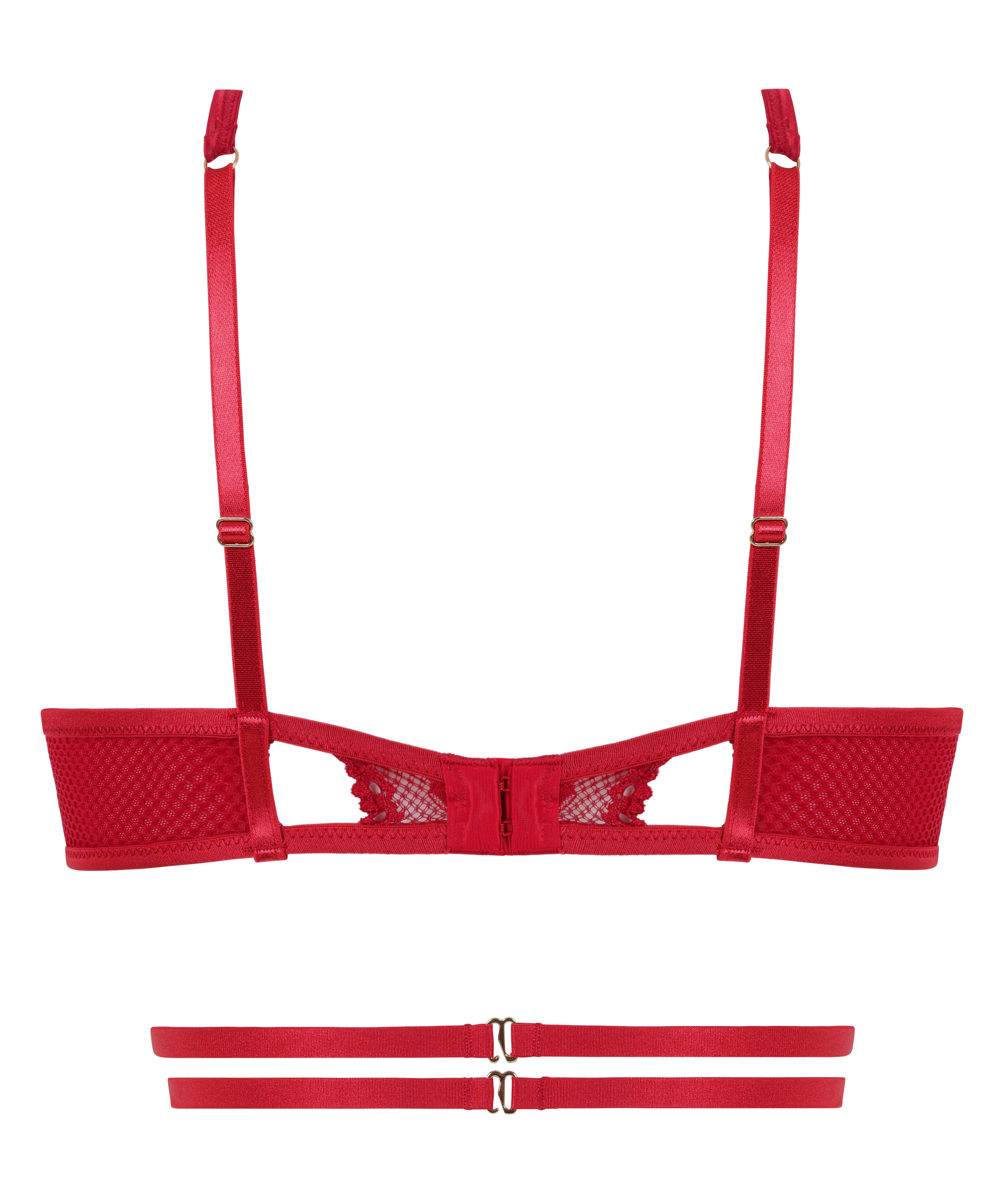 Spice things up met deze super sexy bralette. Het heeft veel fishnet materiaal en overal strappy details. Er zitten leuke details op de cups en op de tailleband. Combineer hem met de bijpassende slip! Onderdeel van onze Private collectie.