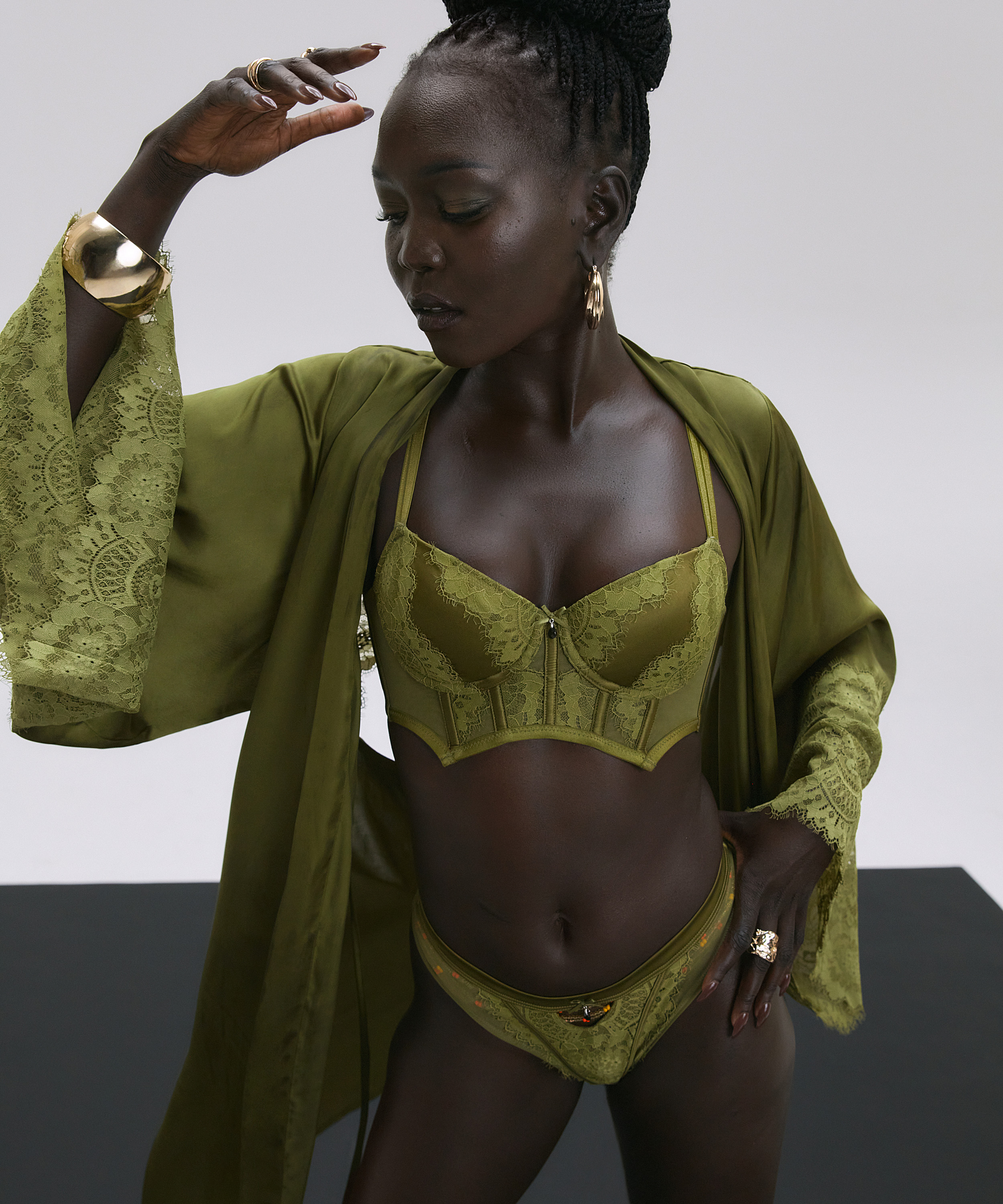 Verwen jezelf met onze must-have Amelie lingerieset! Geef je basics een dagje vrij met deze prachtige, hoog uitgesneden brazilian. Gemaakt van delicate stoffen van doorschijnend mesh en kant en een mooie uitsparing, strik en stras details. Maak je look compleet met bijpassende items uit de Amelie set.