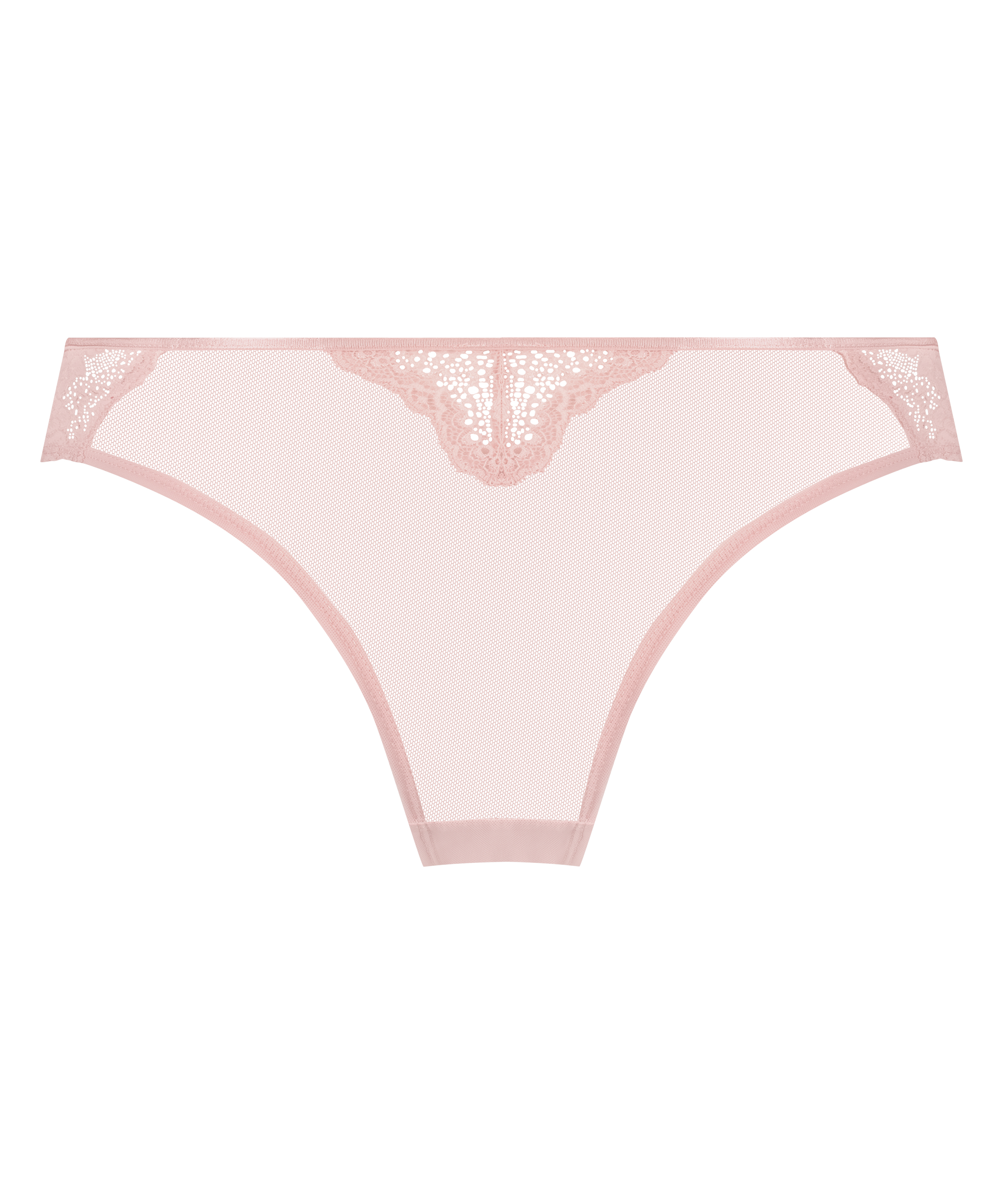Deze brazillian is super leuk! Hij bevat veel kant en ook mesh aan de achterkant. Combineer met bijpassende items voor een complete look!