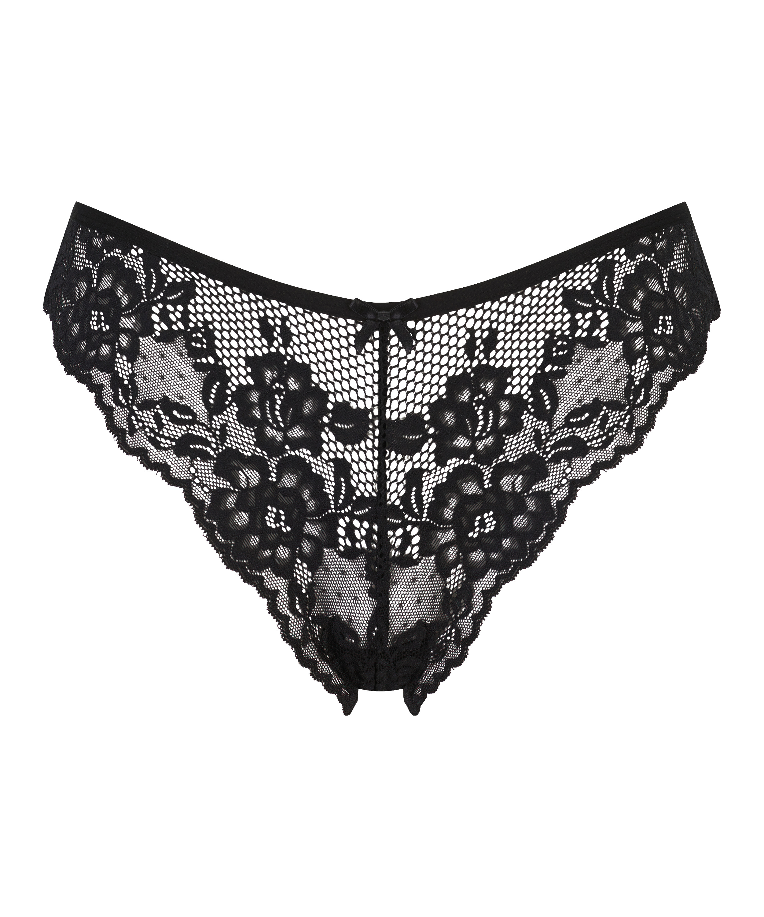 Deze brazilian is semi-transparant en afgewerkt met veel kant. Het strikje aan de voorkant maakt hem af!