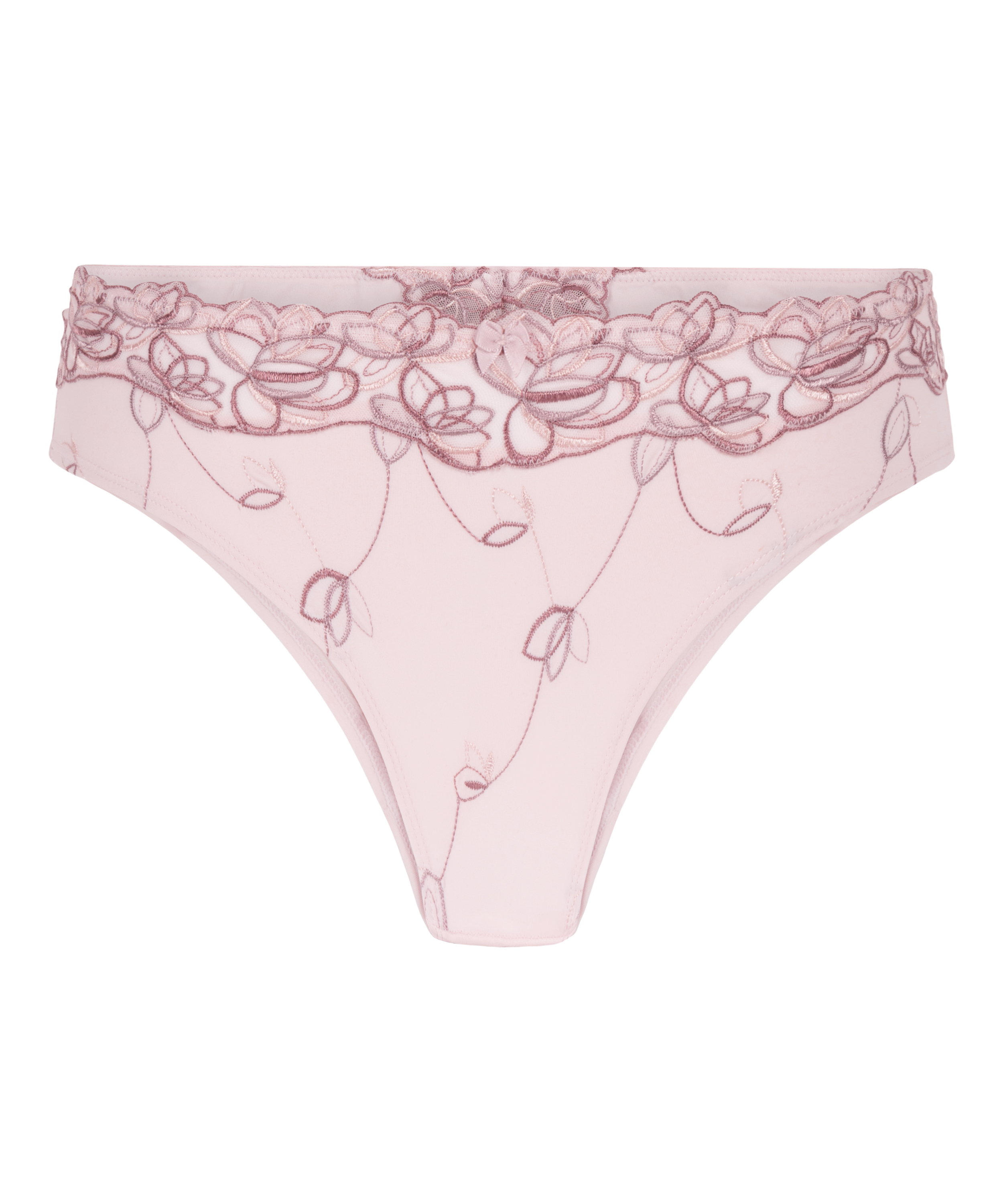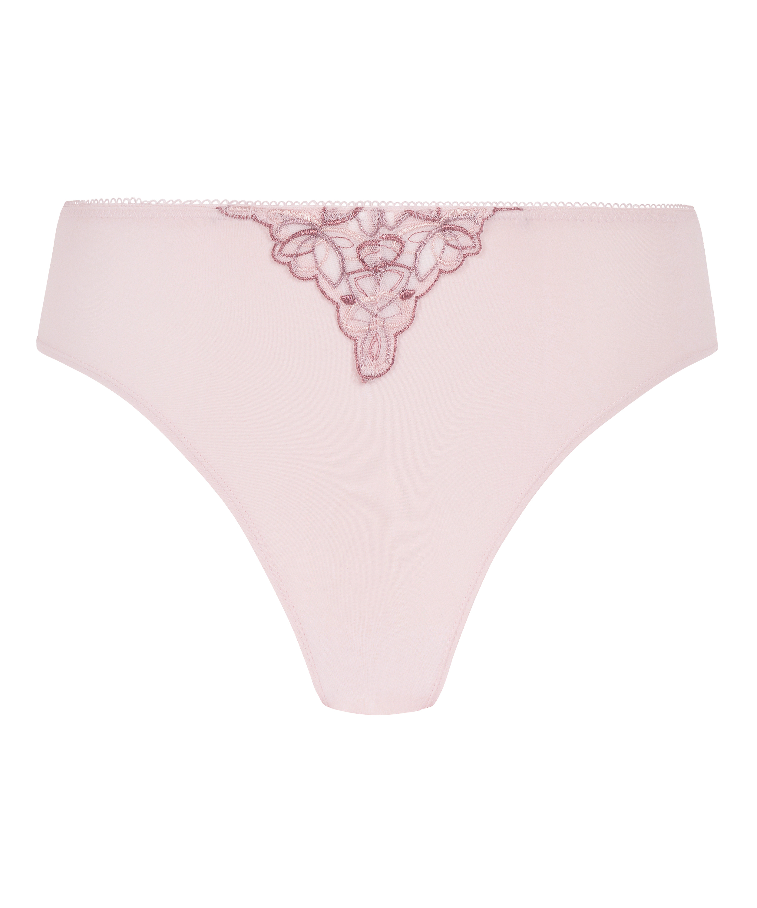 Hunkemöllers meest populaire brazilian! Met aan de bovenzijde semi-transparant kant details. De achterzijde is uitgevoerd in een ondoorzichtige stof met een mooi plooidetail.