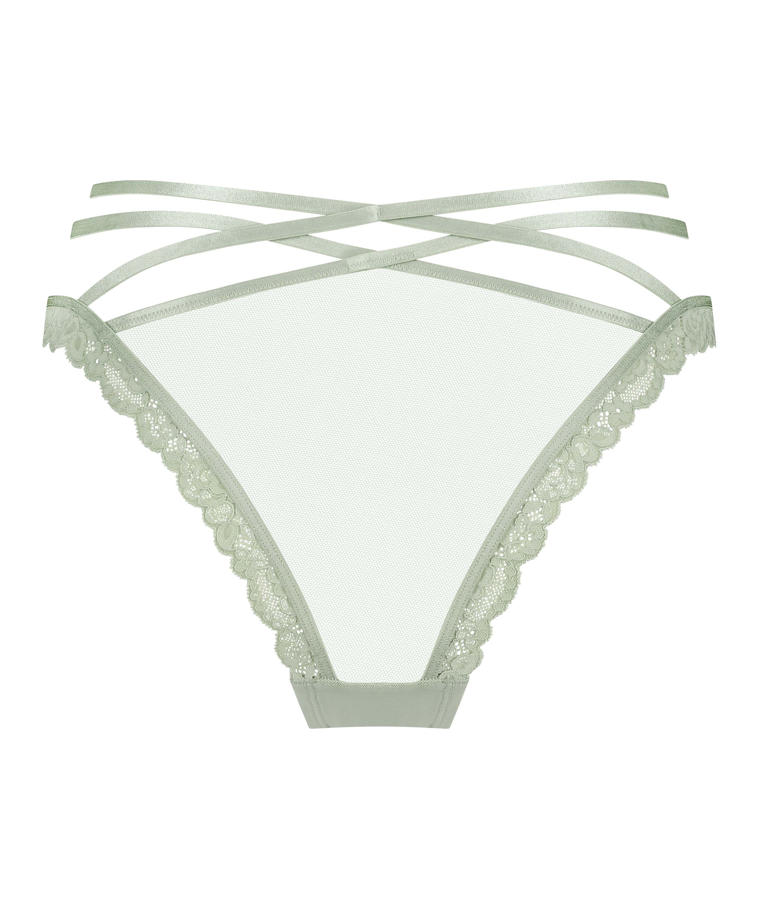 Maak kennis met onze betoverende Janine Brazilian! Dit kledingstuk met fijn kant aan de voorkant en mesh aan de achterkant en versierd met opvallende bandjes rond de taille, vormt de perfecte balans tussen elegantie en verleiding. Combineer het moeiteloos met je favoriete bh om je lingerielook af te maken!