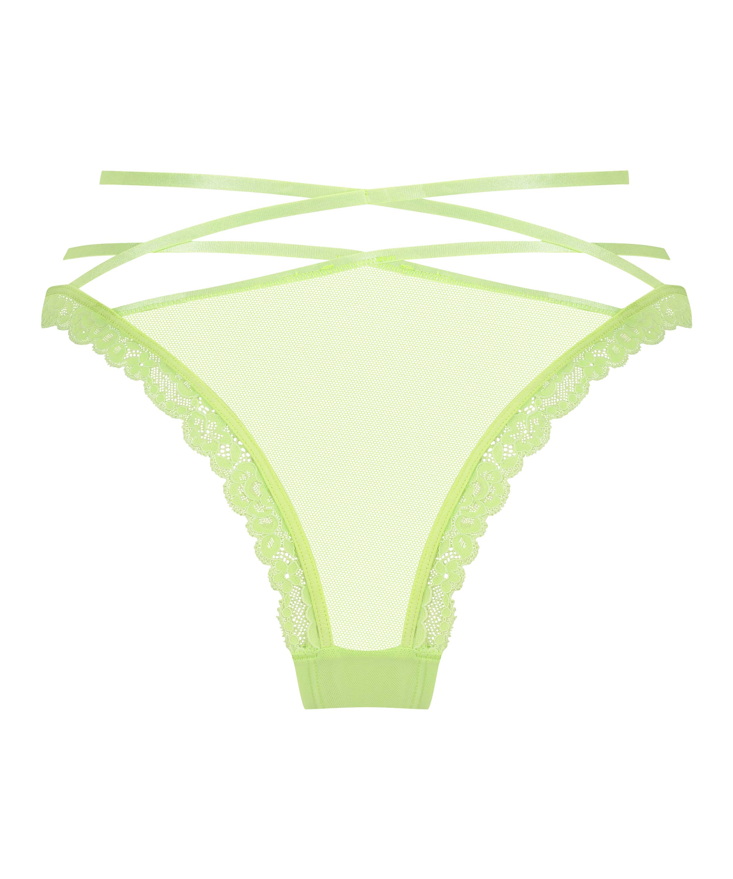 Maak kennis met onze betoverende Janine Brazilian! Dit kledingstuk met fijn kant aan de voorkant en mesh aan de achterkant en versierd met opvallende bandjes rond de taille, vormt de perfecte balans tussen elegantie en verleiding. Combineer het moeiteloos met je favoriete bh om je lingerielook af te maken!