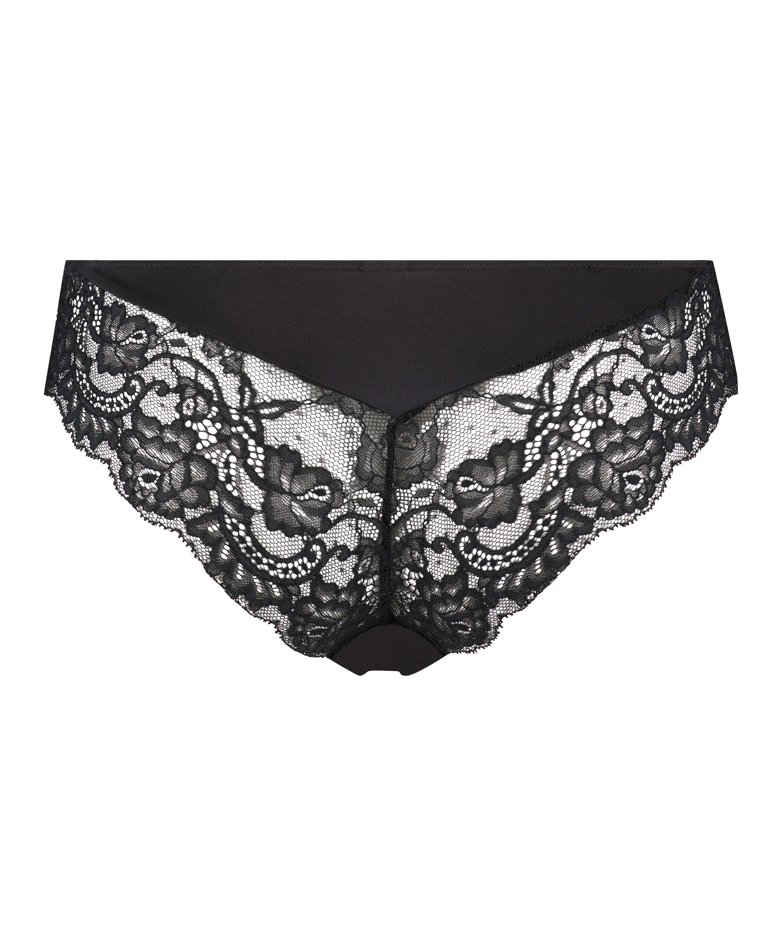Hoe leuk is deze brazilian! Het is een echte must-have slip. De slip bevat kant en een schattig strikje aan de voorzijde. Match met bijpassende bh.