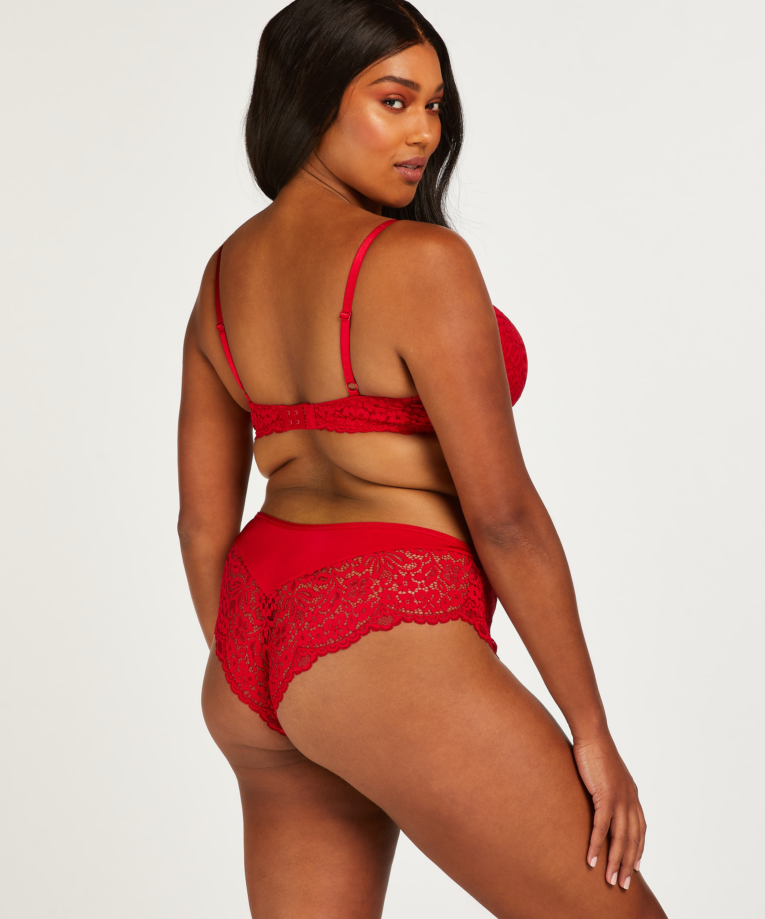 Maak je lingerieset compleet met deze brazilian. Hij is gemaakt van mooi kant en heeft een leuk strikje aan de voorkant. Combineer met de bijpassende bh voor een complete set!