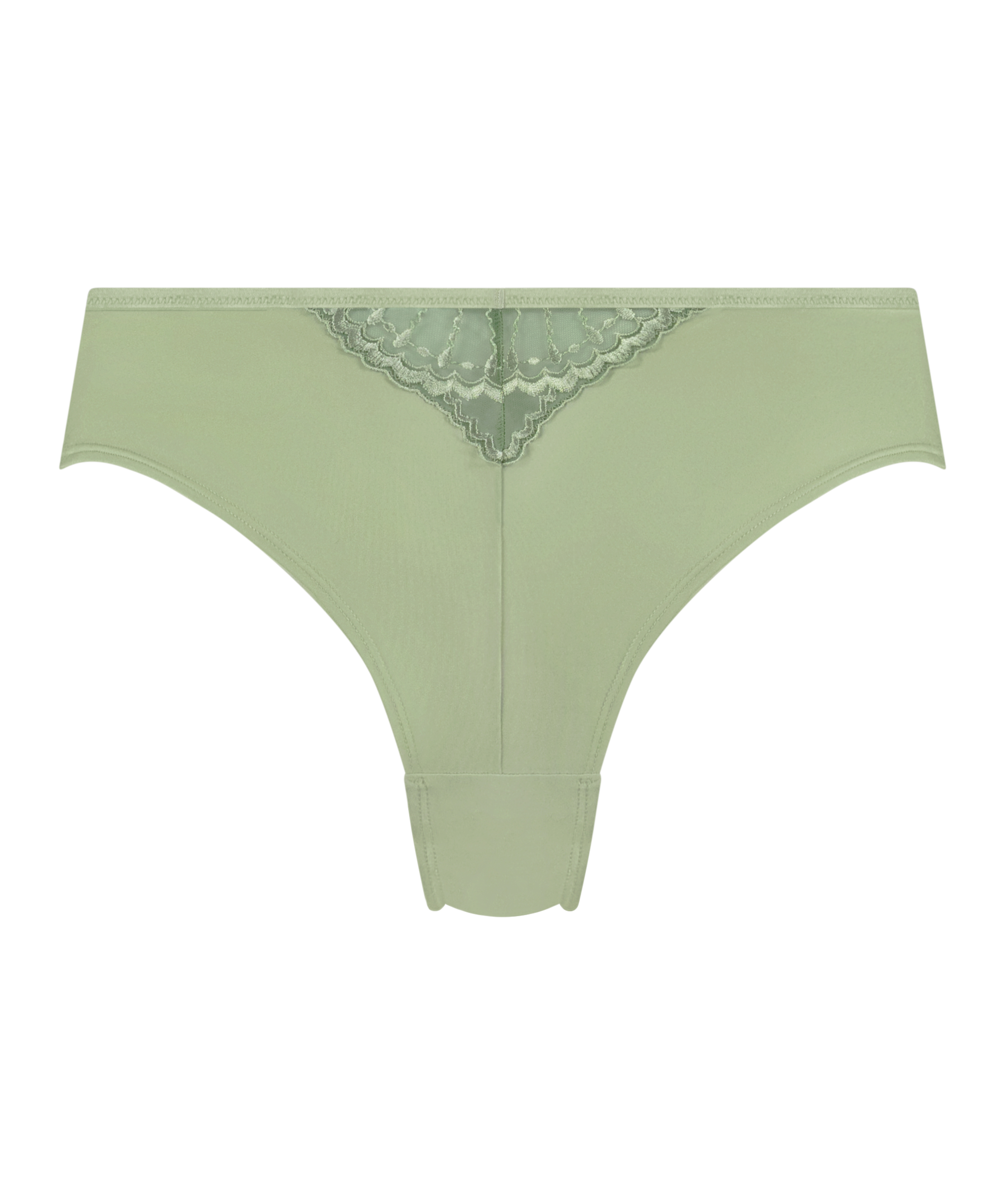Voel je goed in deze adembenemende brazilian! Hij is versierd met prachtige kanten details aan de voor- en achterkant en is ontworpen om je zelfverzekerd en krachtig te laten voelen. Maak je look compleet met onze bijpassende bh en treed de dag tegemoet met ongeëvenaarde elegantie en charme!