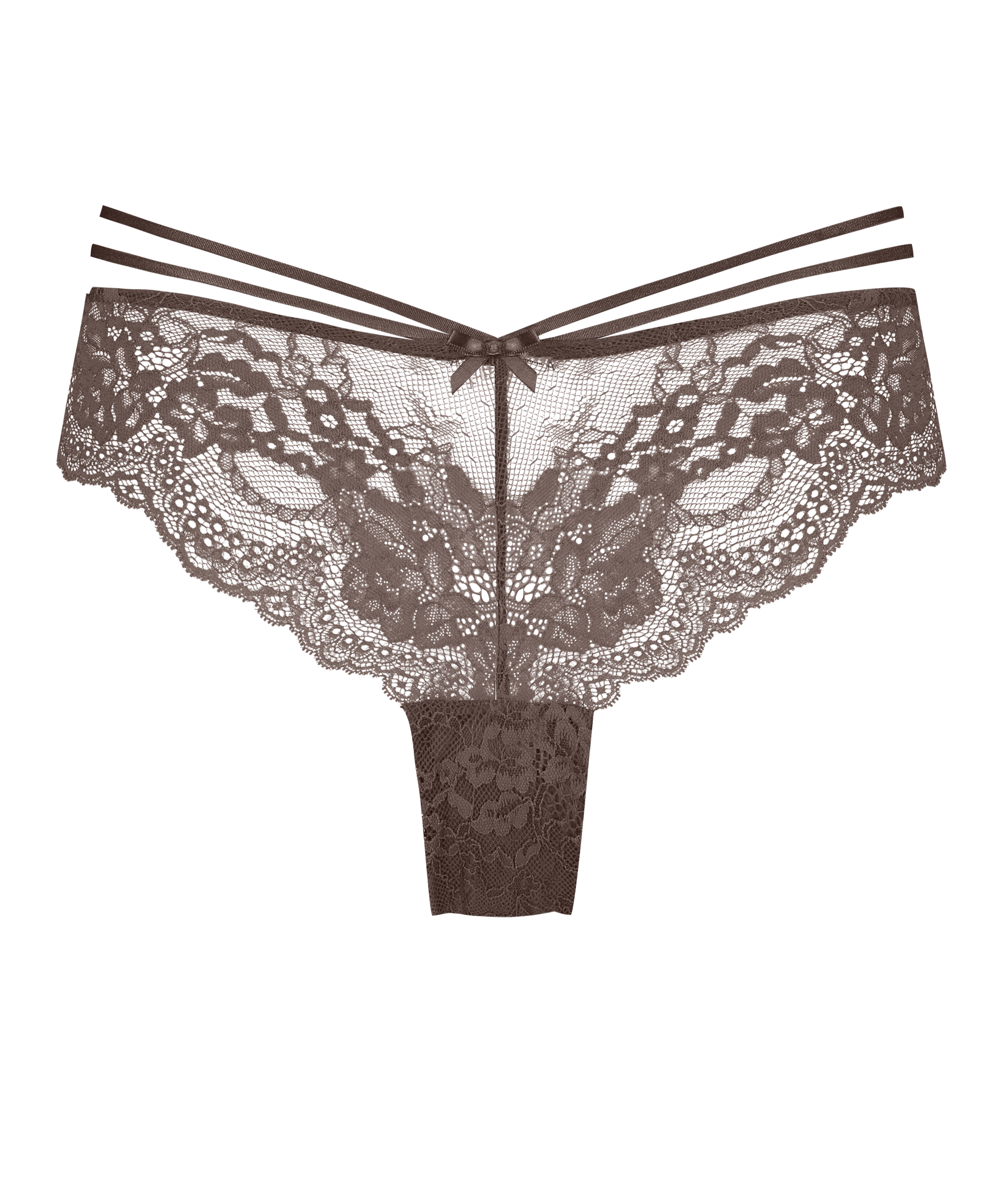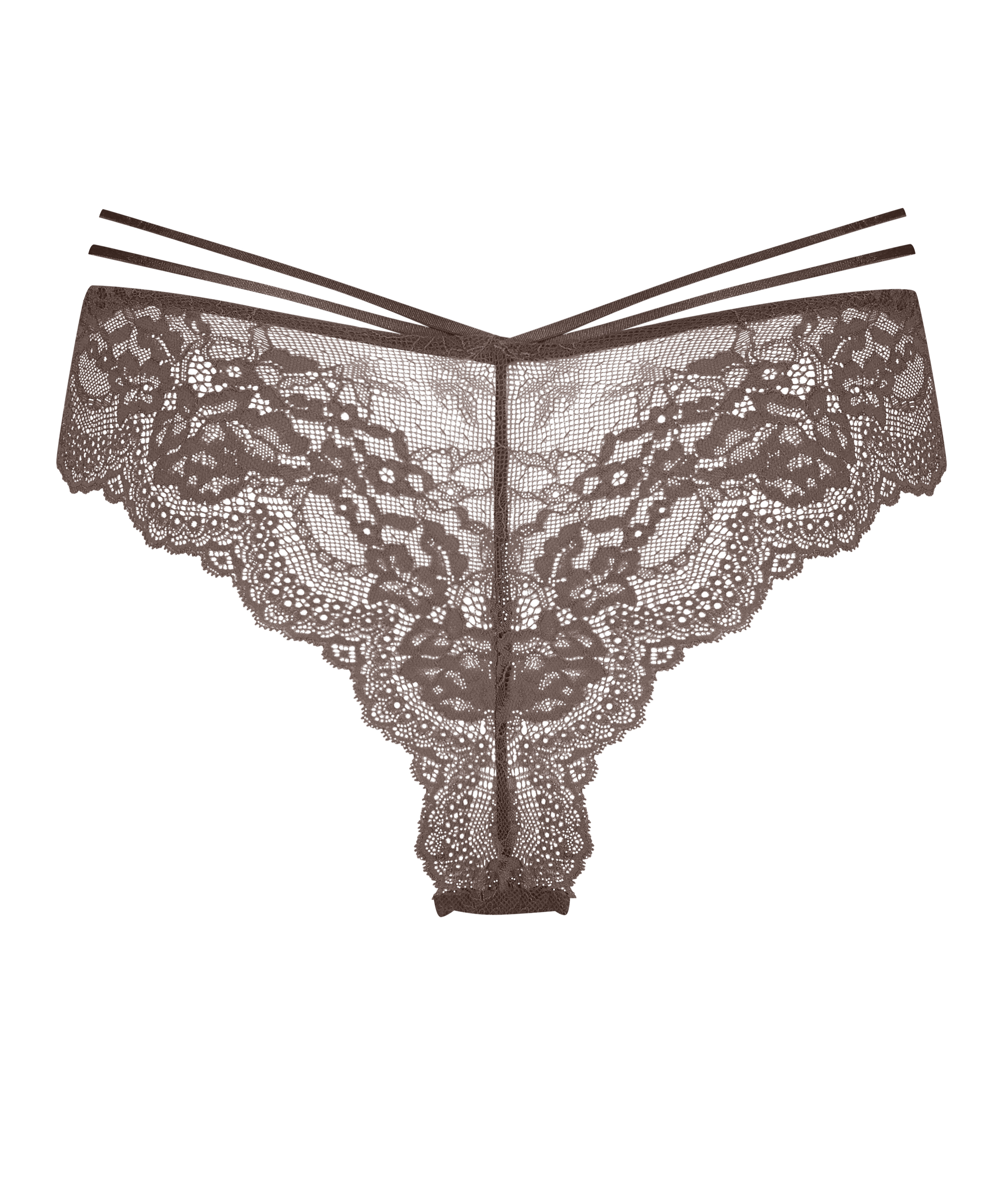 Wordt verliefd op deze brazilian! Met veel romantisch kant voor een semi-transparante look en sexy bandjes op de heupen. Maak de set compleet met een bijpassende bh.