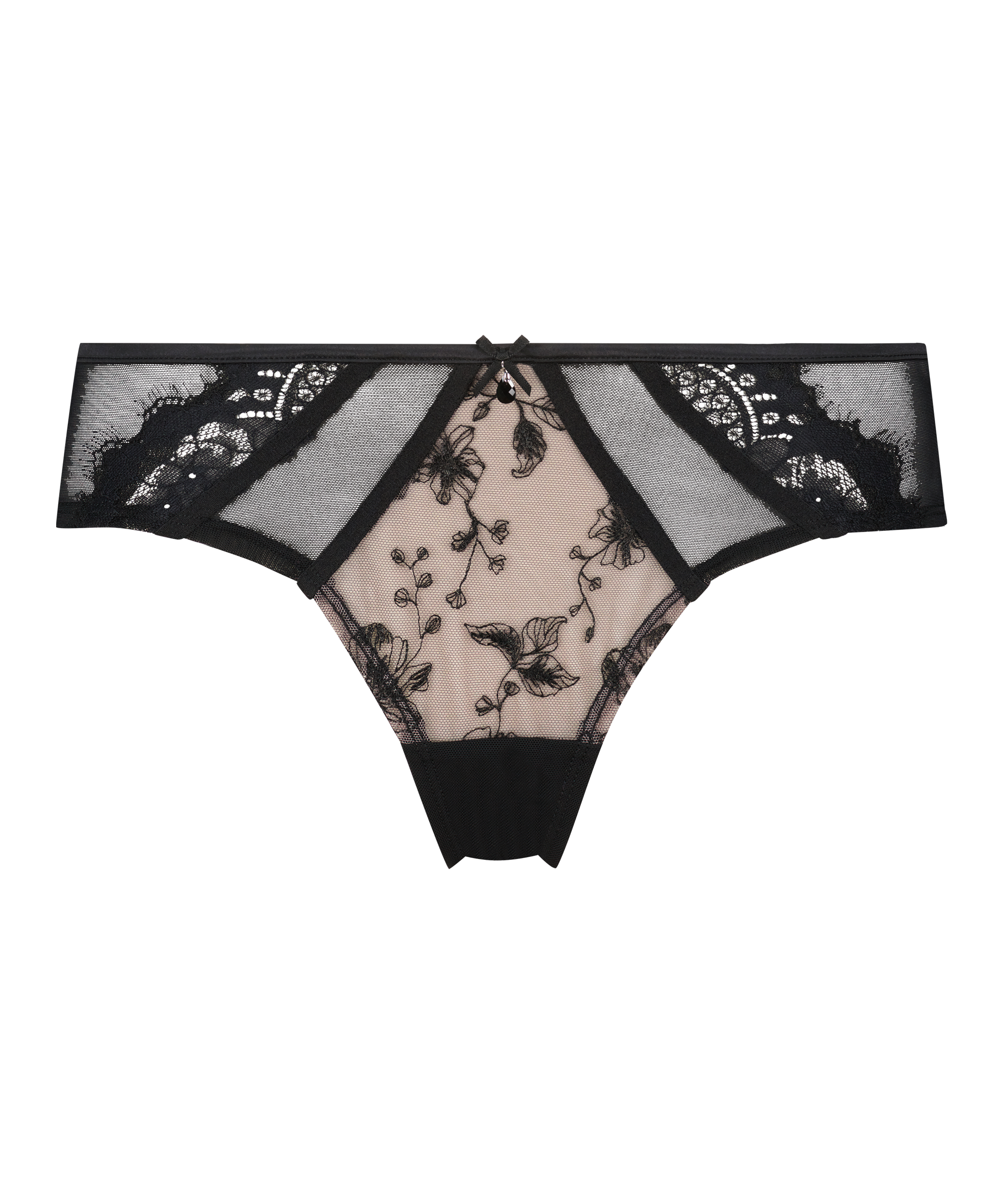 Voel je heerlijk in deze luxueuze delicate slip van superfijn geborduurd mesh! Op bloemen geïnspireerde ontwerpen versieren de voor- en achterkant en voegen prachtige flatterende dynamiek toe. Een centraal paneel van effen mesh op de rug accentueert je rondingen, terwijl de slanke tailleband een vleugje charme toevoegt en de aandacht vestigt op je heupen. Draag hem met de bijpassende Sia bh voor een prachtige complete look.