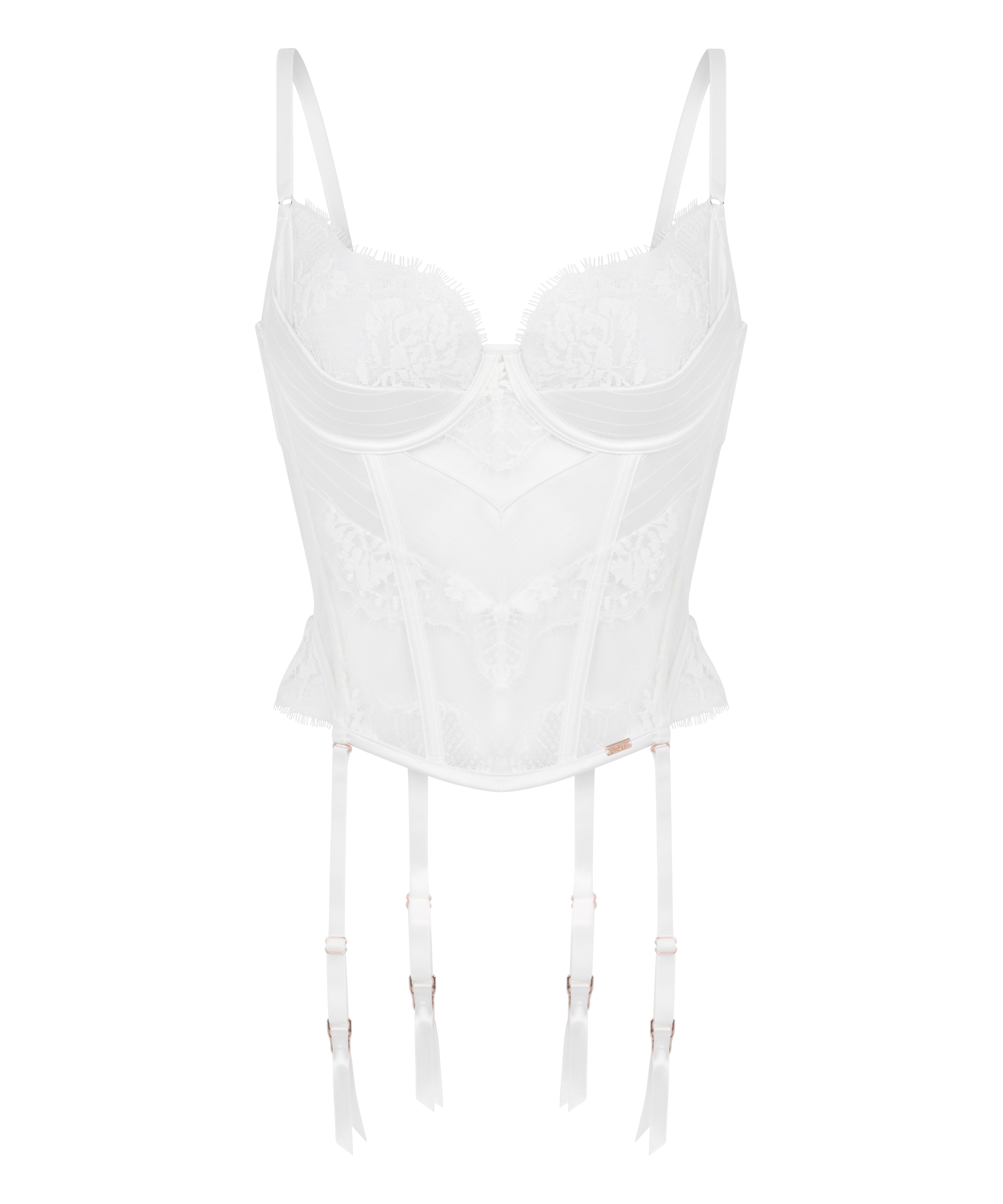 Verhoog de allure met deze prachtige bustier van kant en mesh! De mix van transparante en glanzende stoffen creëert een fascinerend contrast, terwijl het gestructureerde ontwerp en de dikkere ondercup vorm en ondersteuning bieden. Met de afneembare jarretelbandjes kun je je look aanpassen aan elke gelegenheid!