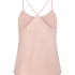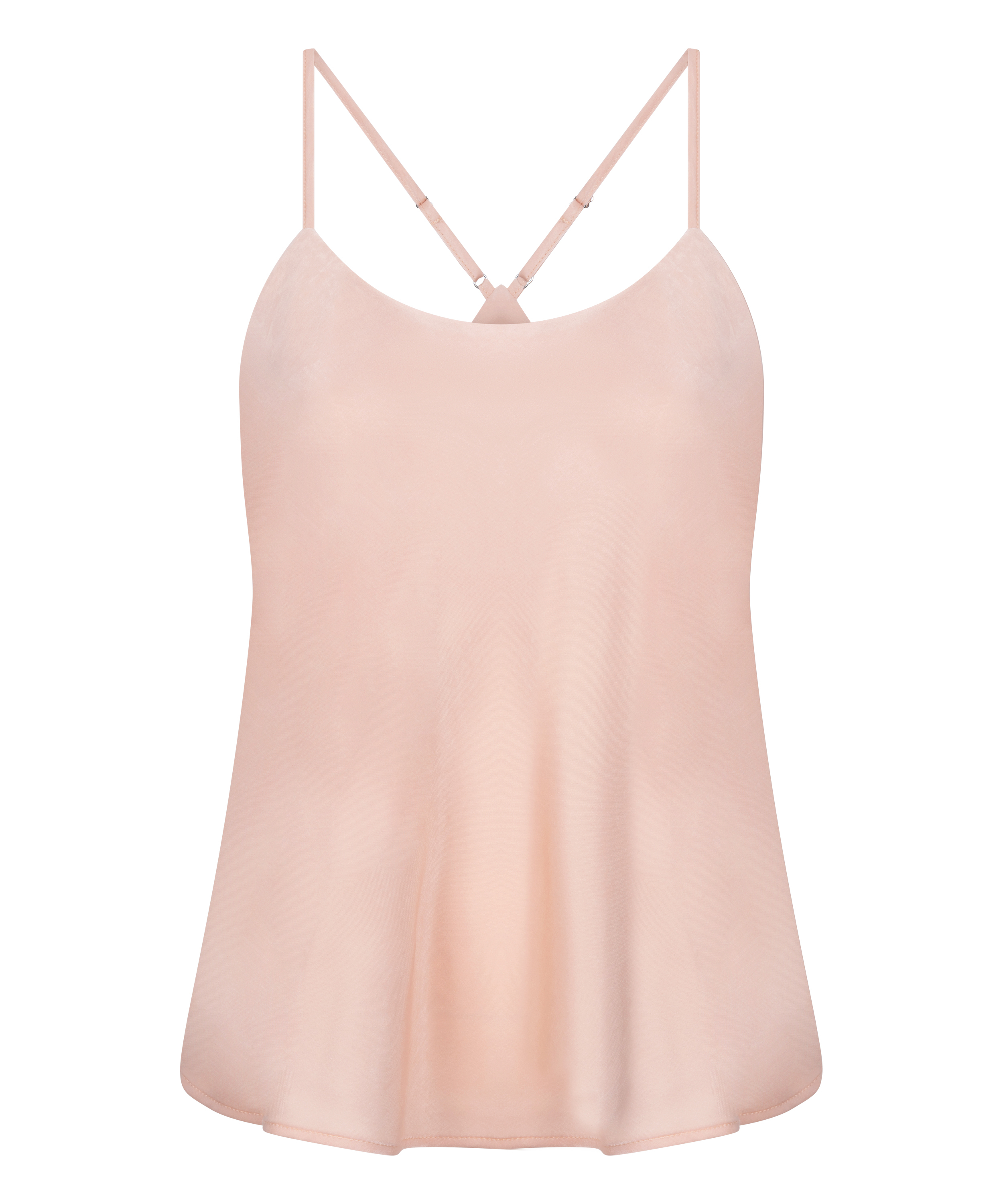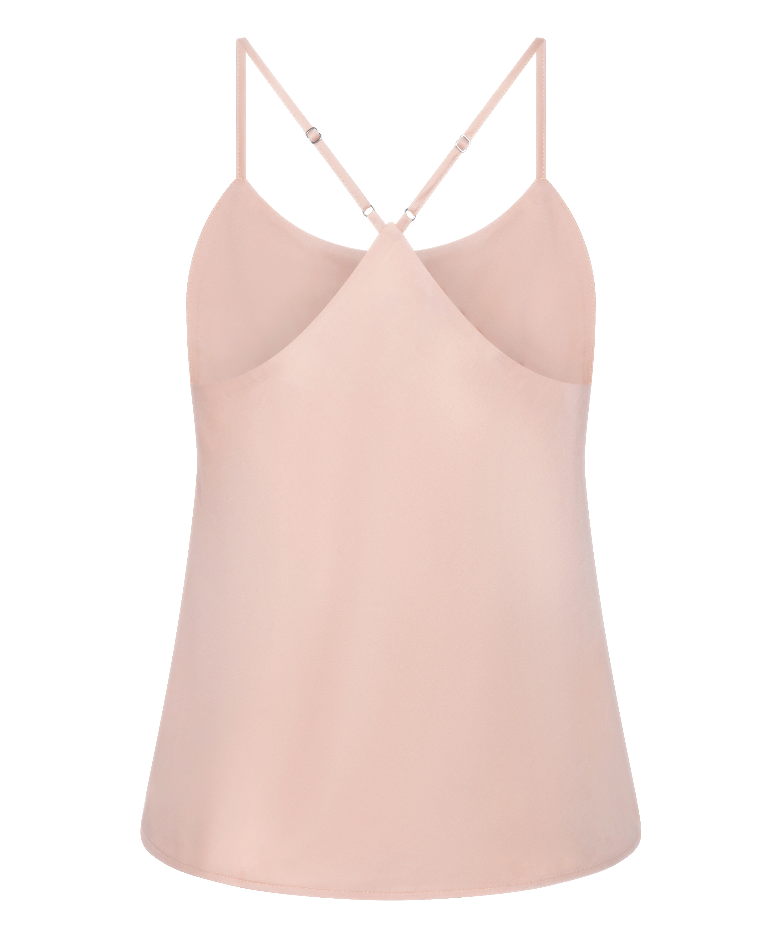 Deze cami top heeft een satijnen look and feel. De schouderbandjes zijn verstelbaar.