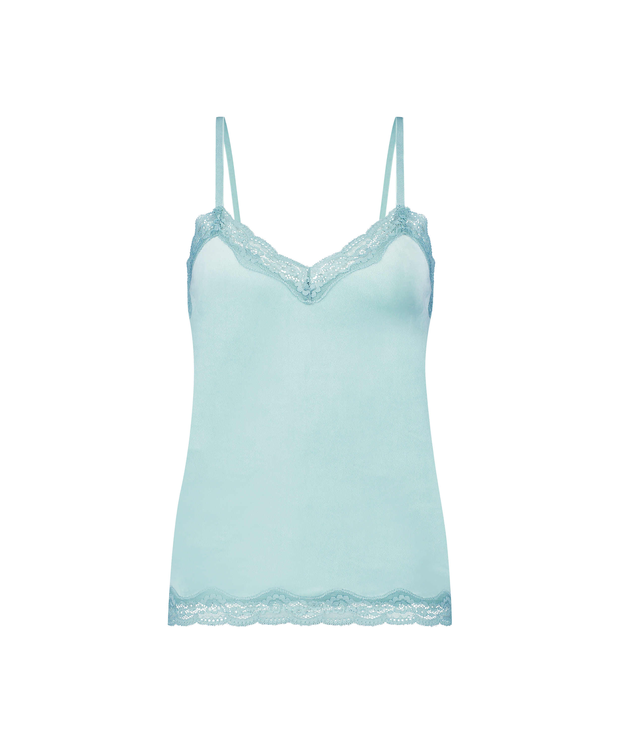 Voel je super sexy en vrouwelijk met deze zachte top aan! De top is gemaakt van een velours stof en is afgewerkt met kant. Combineer met de matchende items.