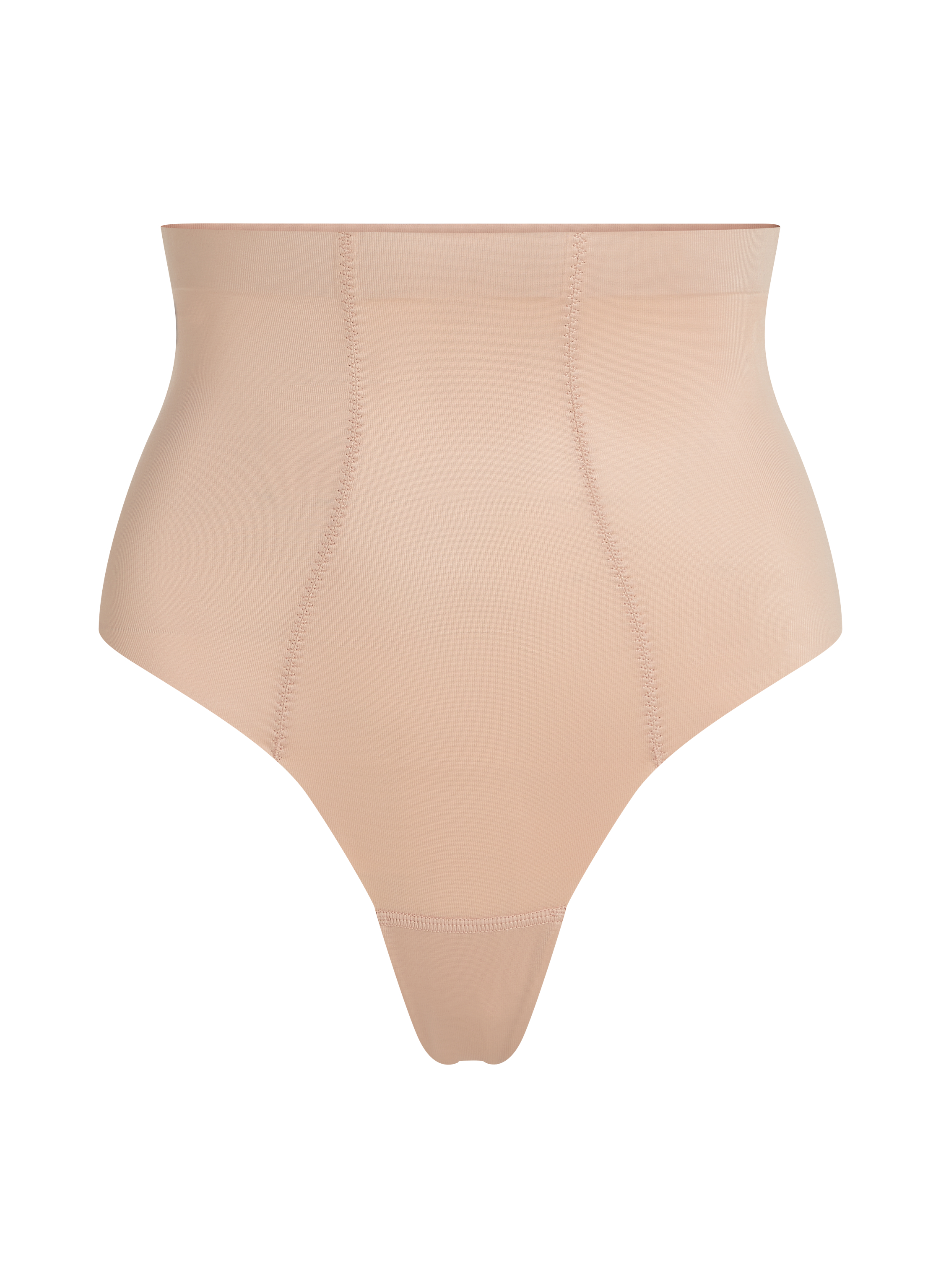 Deze hoge string is een perfecte basis. Het vormt je silhouet optimaal, waarbij een zijdezachte look ontstaat die onder elke outfit past. Past optimaal met de hoge tailleband.