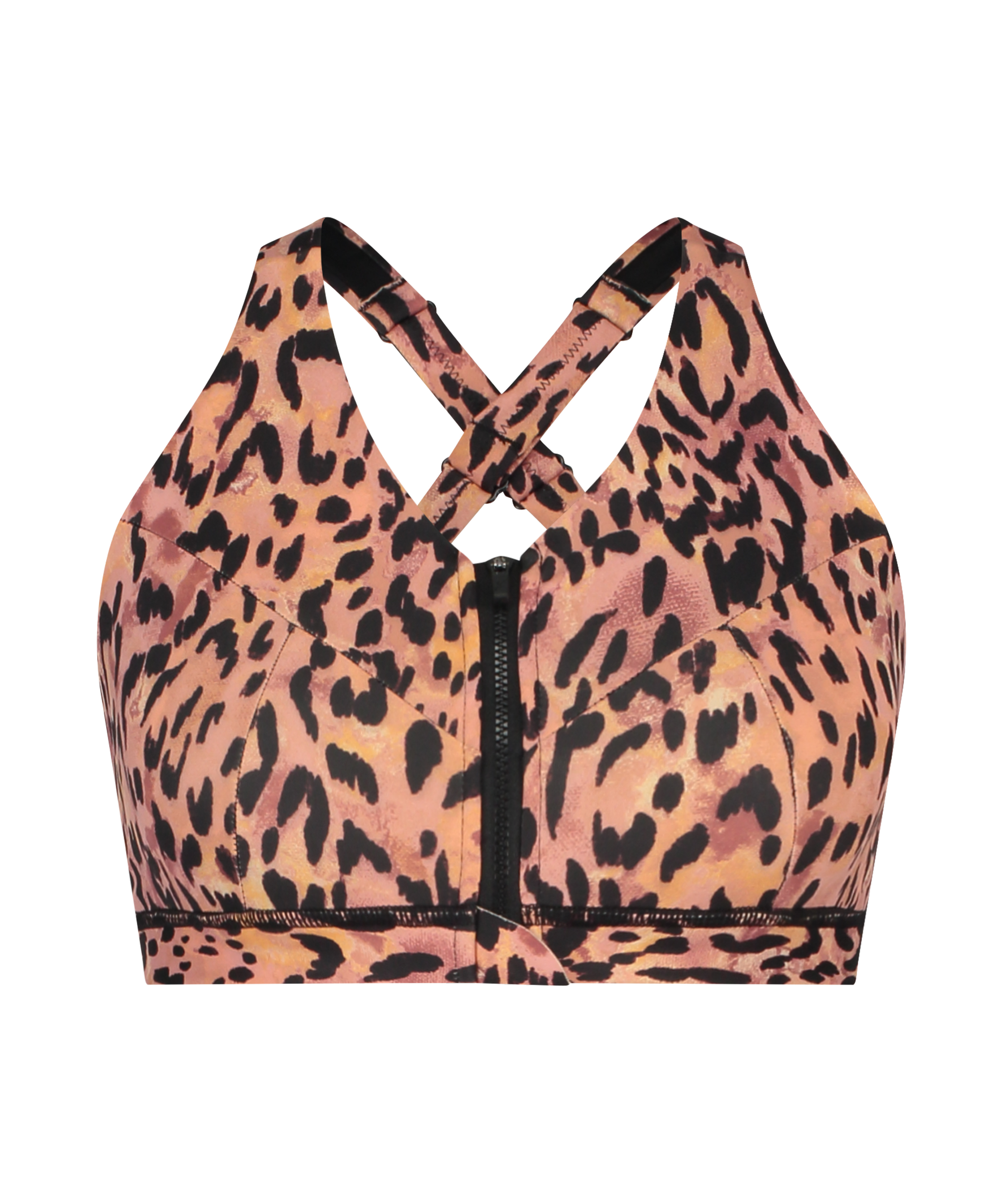 Ga lekker sporten met deze sport bh! Het is ontworpen om de ultieme ondersteuning en comfort te bieden tijdens trainingen met hoge intensiteit. Het is voorzien van een ritssluiting voor gemakkelijk aan- en uittrekken, een mooie print en mesh details aan de voor- en achterkant. Maak je sportieve look compleet met de bijpassende Hunkemöller leggings!Bereid je voor op een geweldige HIIT-workout zonder zorgen!