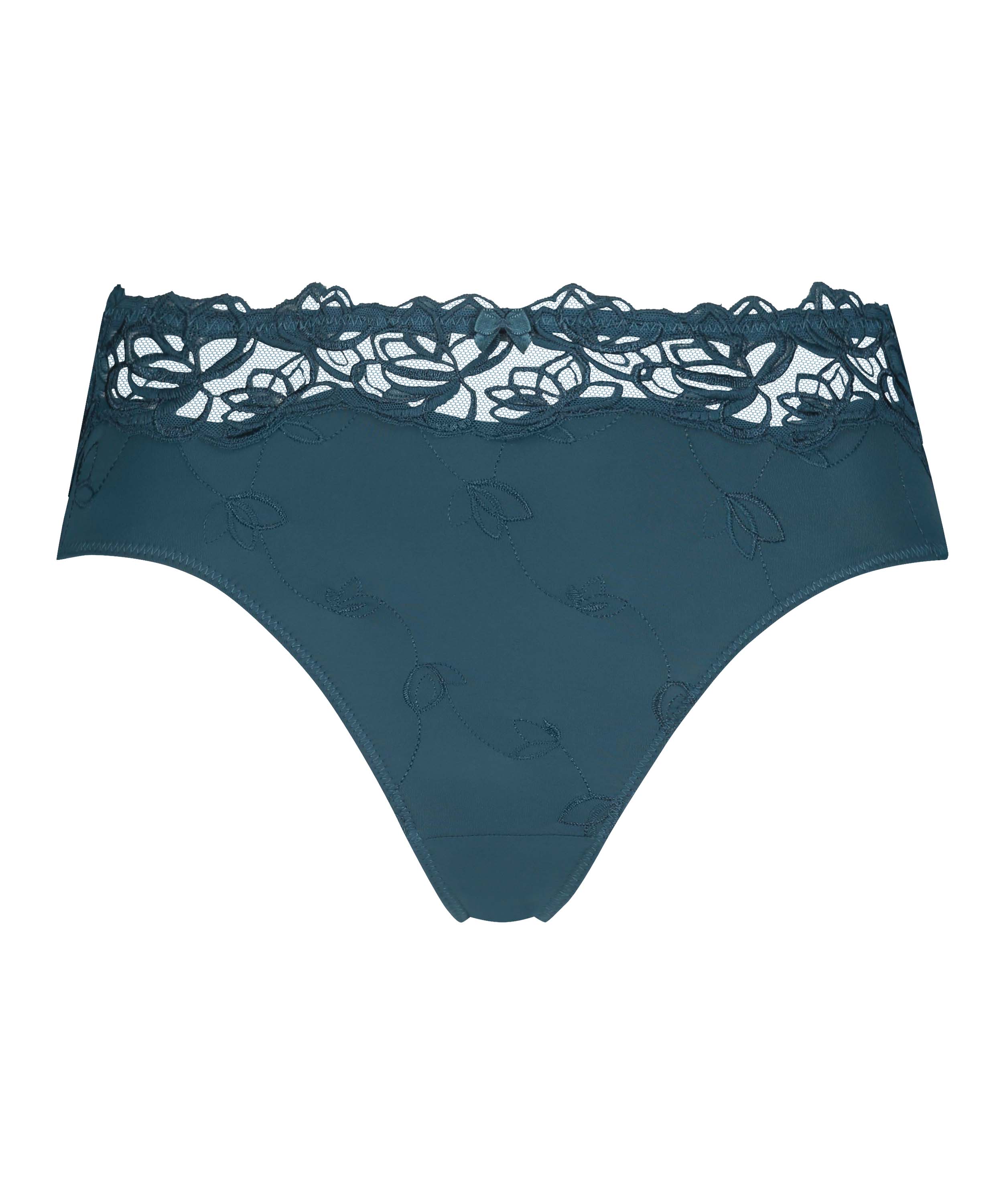 Deze hoge slip is uitgevoerd in een soepel vallend materiaal wat zorgt voor een fijne pasvorm. De slip is aan de voorzijde versierd met bloemenborduursel en een strikje.