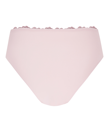 Deze hoge slip is uitgevoerd in een soepel vallend materiaal wat zorgt voor een fijne pasvorm. De slip is aan de voorzijde versierd met bloemenborduursel en een strikje.