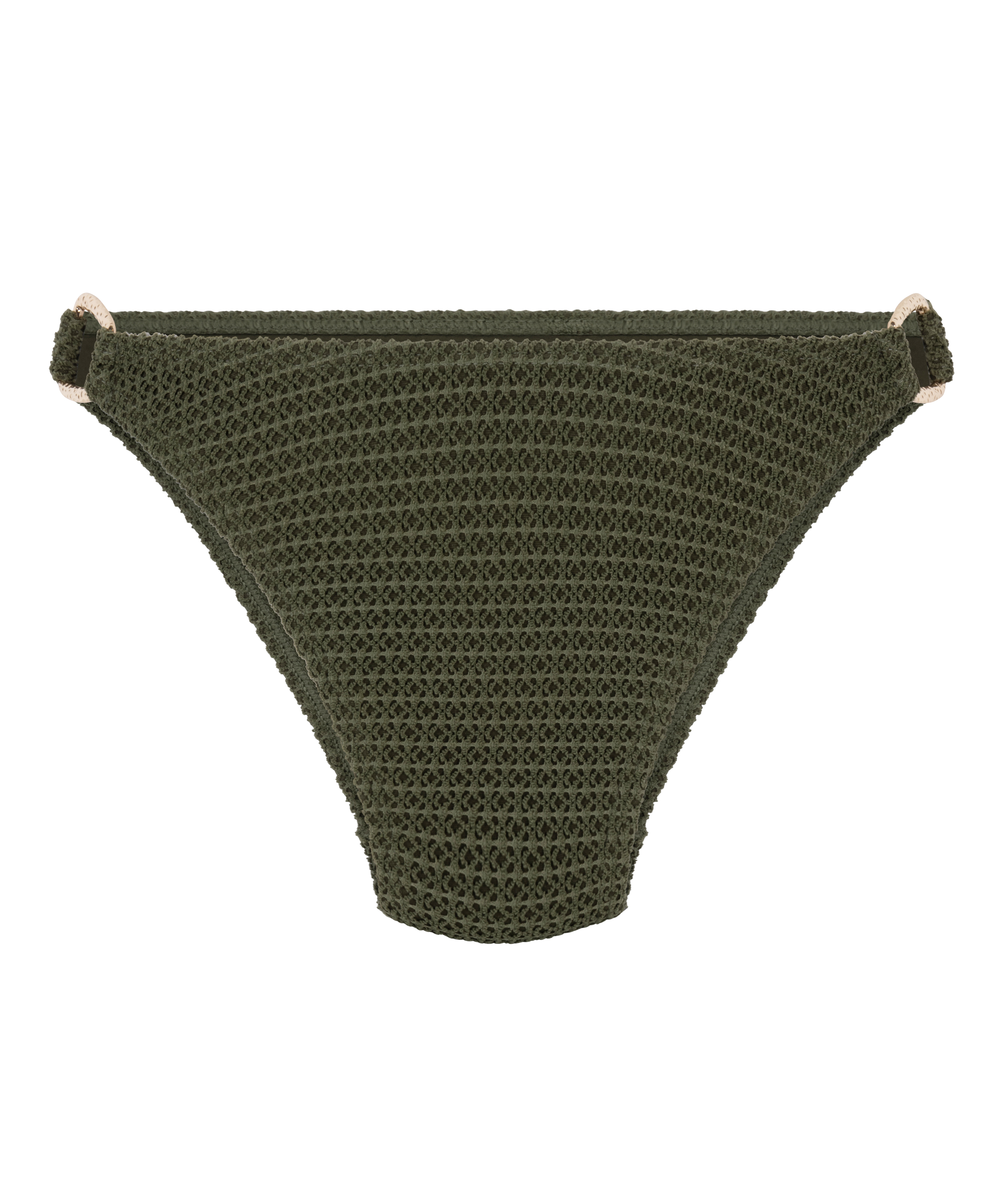 Maak een statement op het strand met dit hoog uitgesneden bikinibroekje. Ontworpen om je benen te verlengen en je silhouet te flatteren. Met gouden details aan beide zijden voegt dit stuk een vleugje luxe toe aan je zwemkledingcollectie.