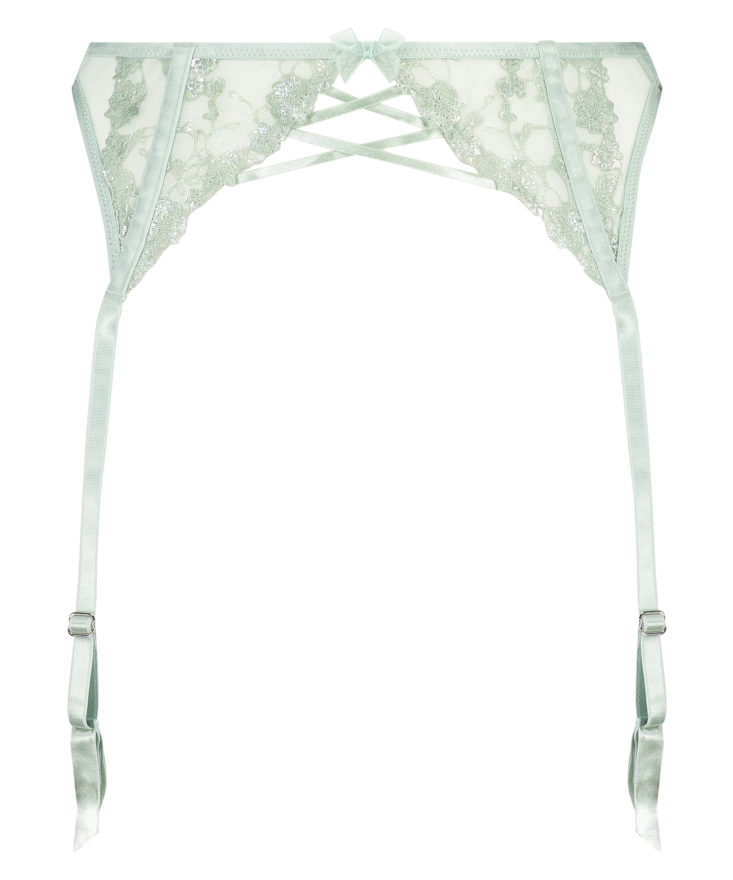 Voel je super sexy met deze jarretels! Met een all-over lace look voor een delicate en sexy touch aan je set. Met ondersteunende voor en achter baleinen. Gemaakt met een schattige strik. Zoek de passende set!
