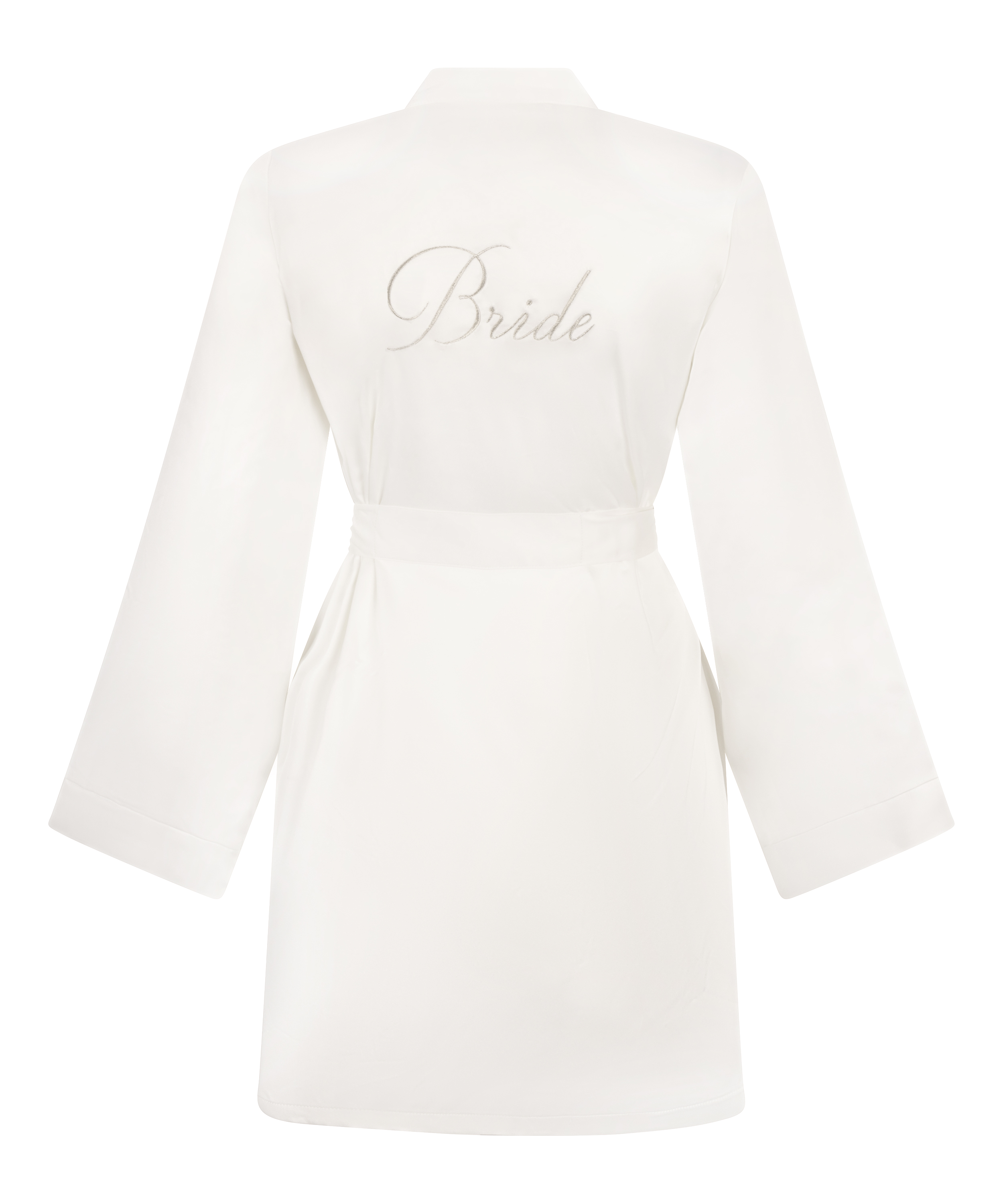 Wikkel jezelf in elegantie met deze bruidkimono. Ontworpen met een luxe satijnen uitstraling die prachtig over het lichaam valt. Perfect voor de ochtend van de bruiloft of romantische momenten tijdens de huwelijksreis. De echte striksluiting in de taille zorgt voor een flatterende, verstelbare pasvorm. Combineer met je favoriete lingerieset voor een complete look.