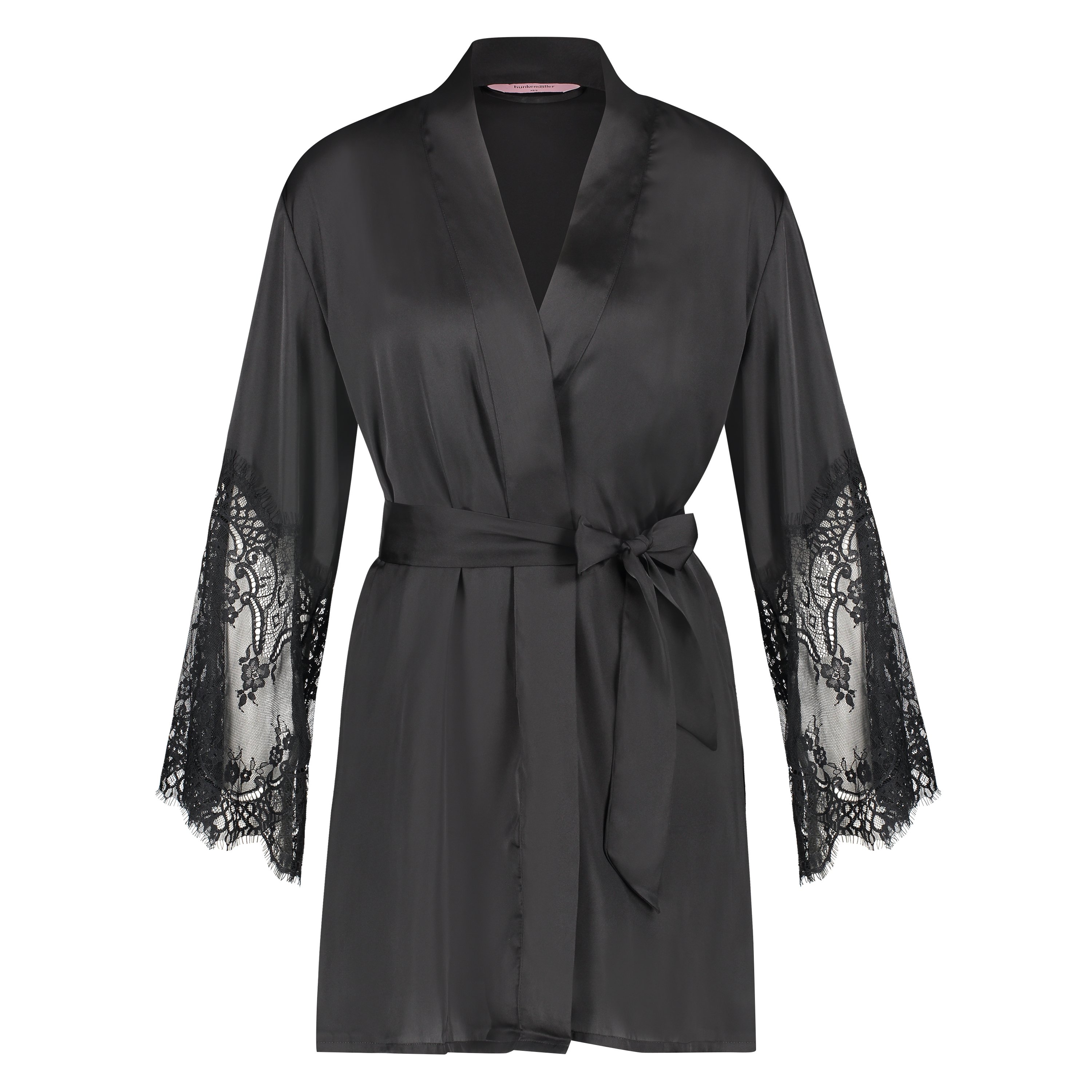 Maak je lingerie set nog verleidelijker met deze kimono! De kimono heeft een satijnen look en feel en is afgewerkt met kant.