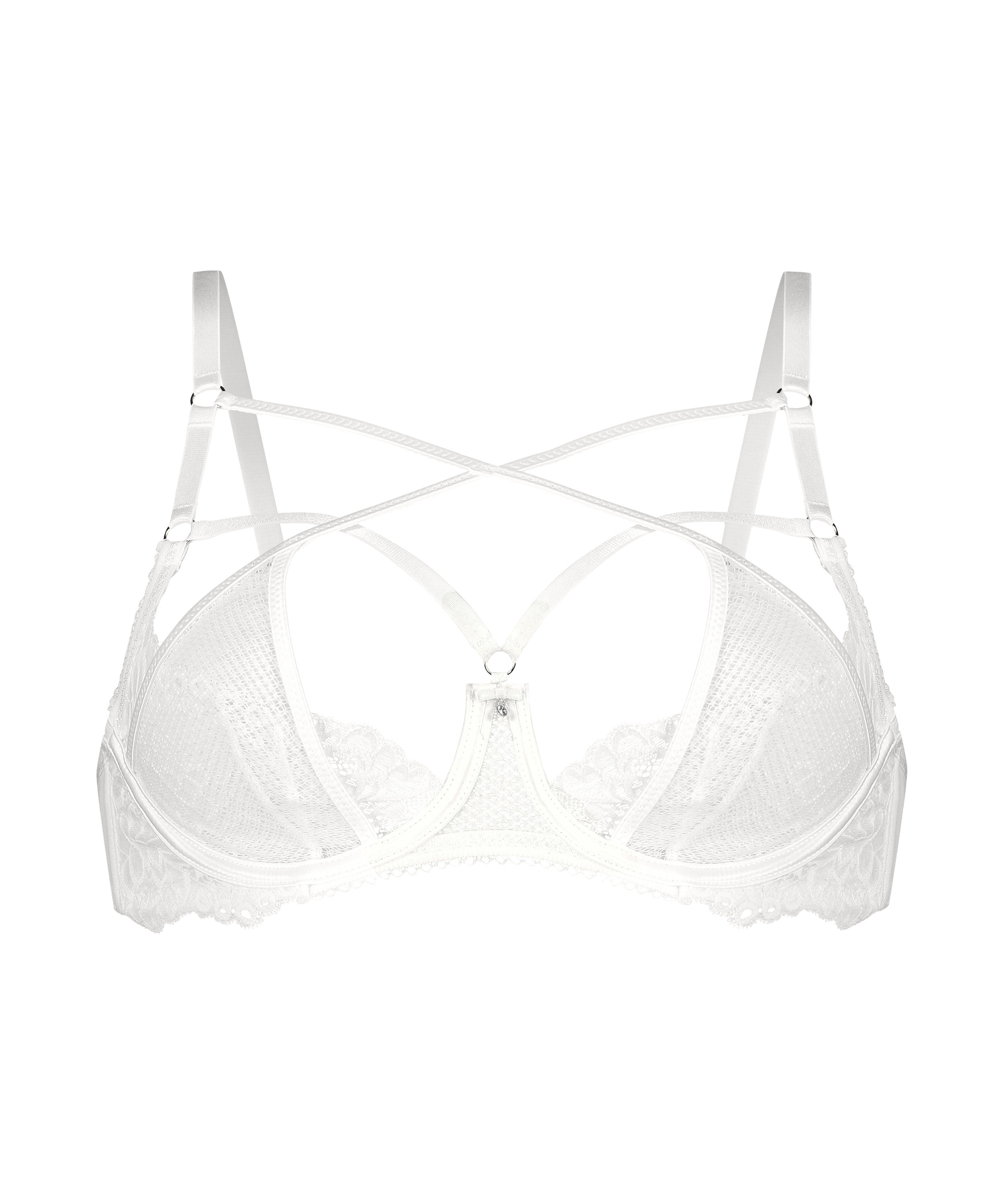 Ga voor een spannende lingerieset met deze bh! Uitgevoerd met strappy bandjes en semi-transparant kant. Onderdeel van de Private Collection!