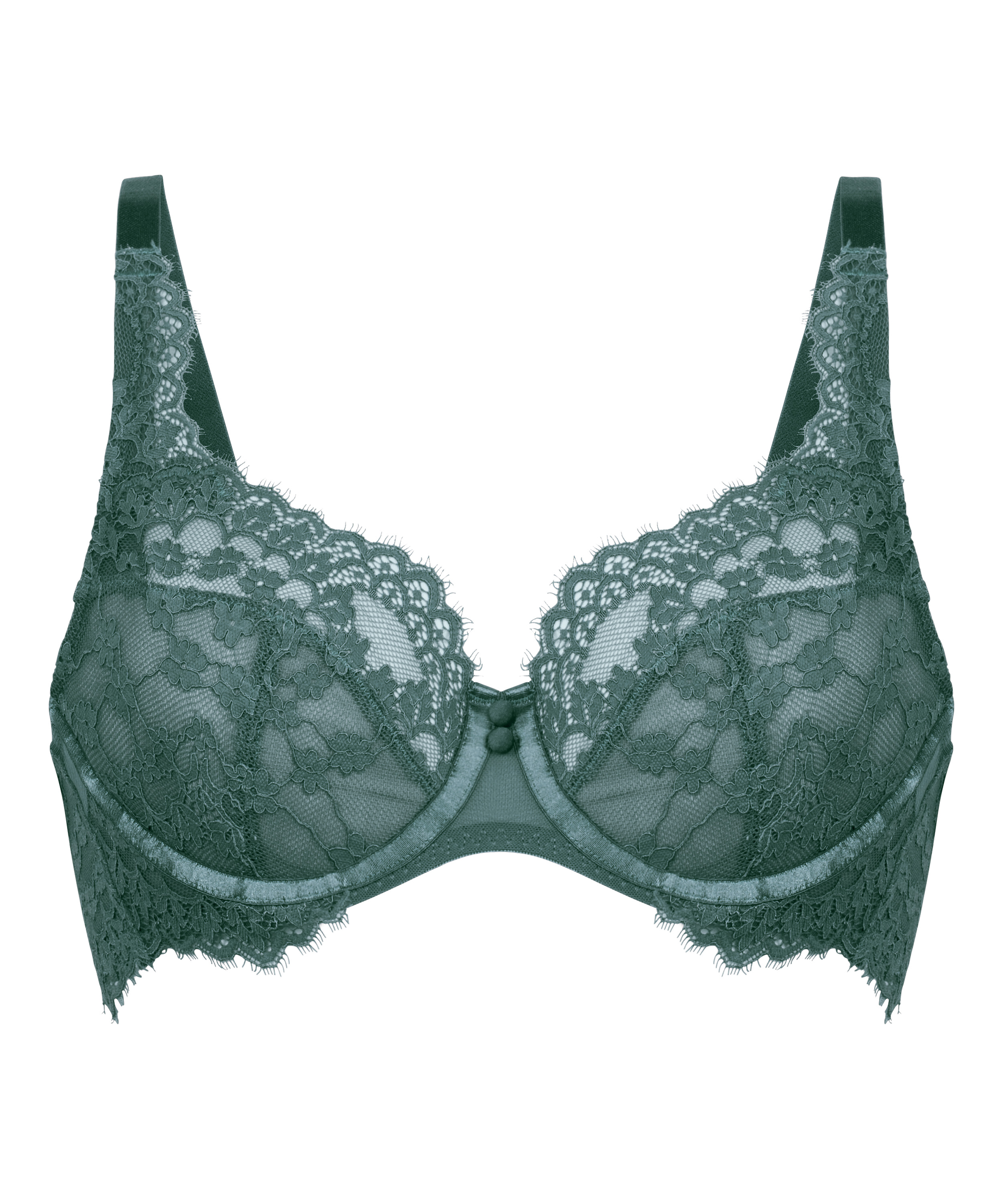 Zie er prachtig uit in deze bh! Hij is niet voorgevormd, semi-transparant en bevat veel kant. Combineer met bijpassende items voor de complete set.