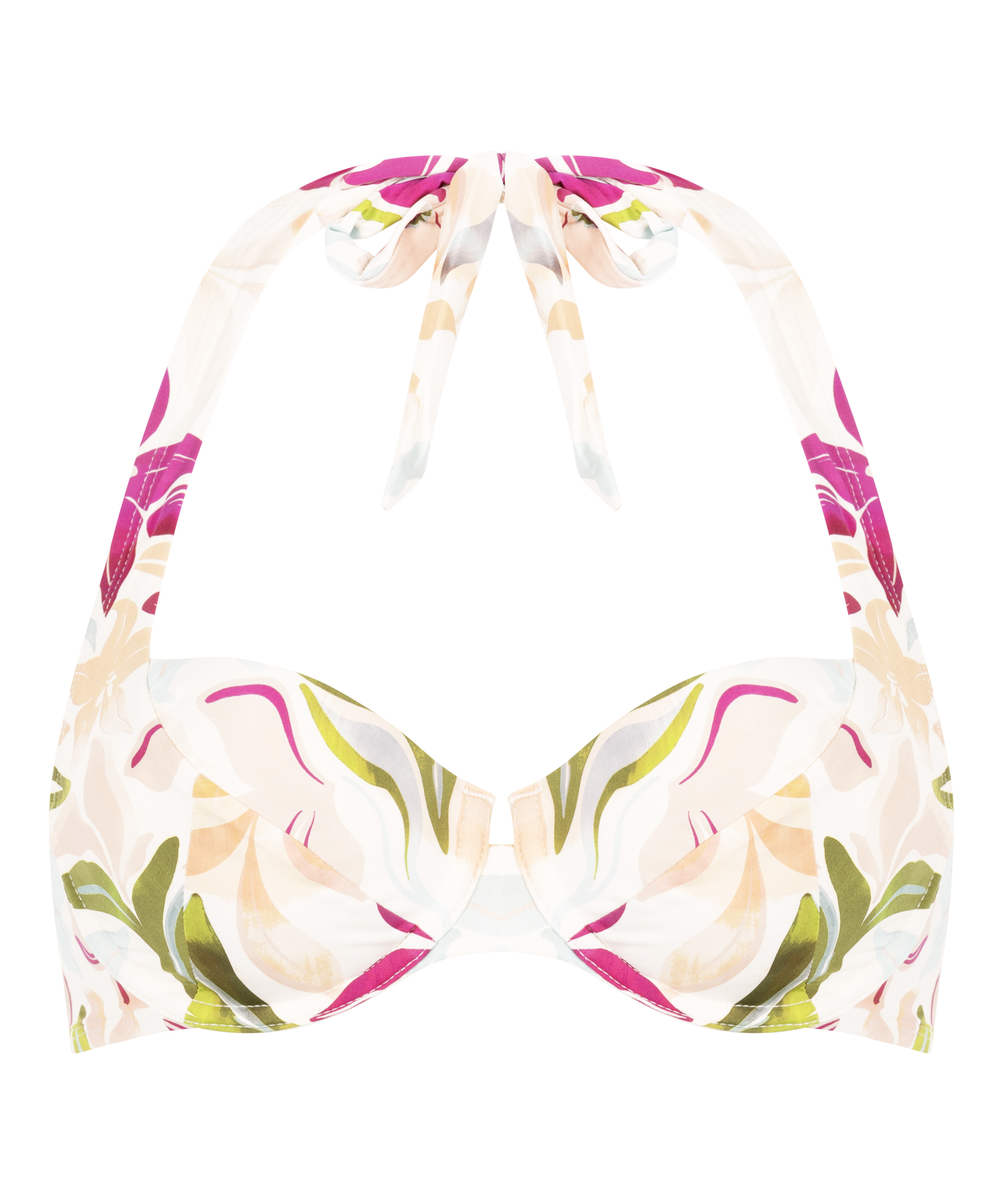 Verfraai je strandlook met deze elegante ongewatteerde zwemtop! Het beugelontwerp biedt lift en ondersteuning, terwijl het delicate bloemenpatroon een vleugje vrouwelijkheid toevoegt. Combineer het met een bijpassend zwembroekje voor een chique en zelfverzekerd ensemble! Onze badkleding is ontwikkeld met hoogwaardige stoffen en voeringen voor een ondersteunende pasvorm. Wil je een meer relaxed fit, dan raden we aan een maat groter te kiezen.