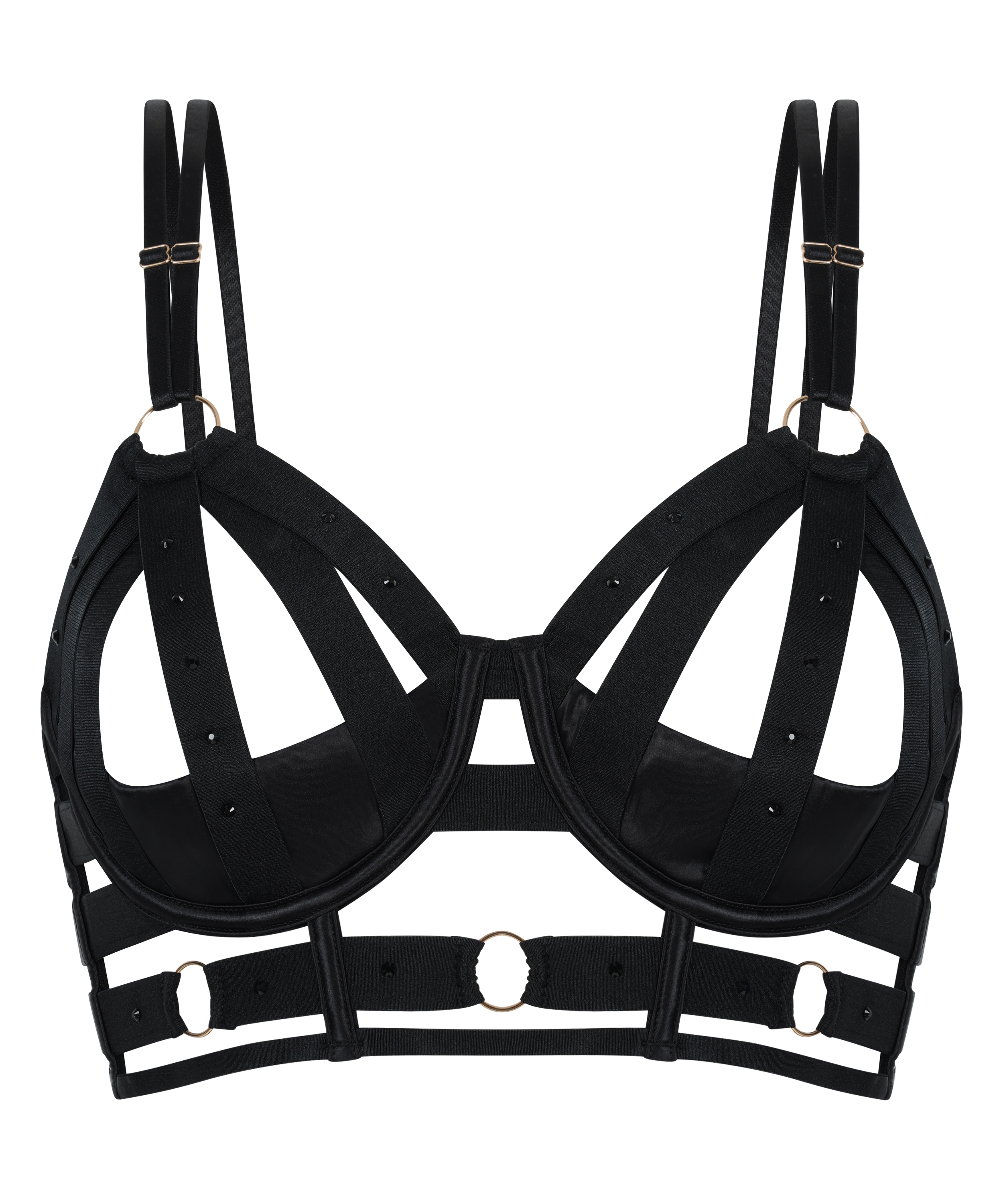 Verhoog de verleiding met deze bandjesbeha met een uniek harnasontwerp, die een stoere uitstraling toevoegt aan je lingerieverzameling. De bh heeft veel bandjesdetails en is voorzien van beugels. Onderdeel van onze Private Collection.