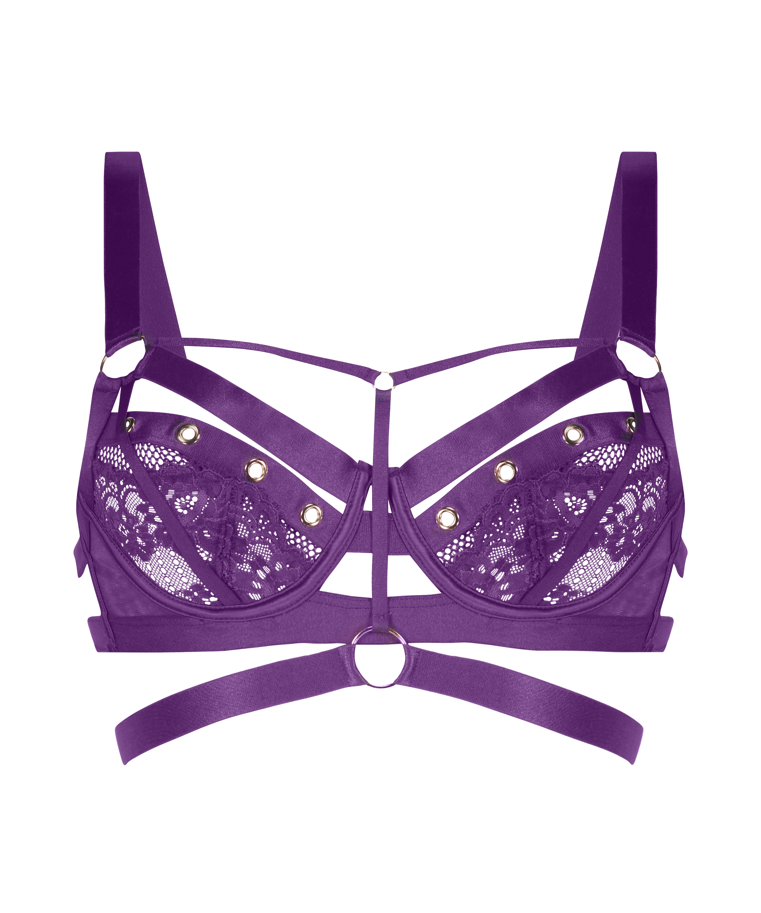 Ben je in een uitdagende bui? Trek dan deze sexy bh aan! Deze bh is bijna volledig bedekt met straps. De cups zijn van kant. Ook heeft hij een brede sluiting op de achterkant, waardoor die erg lekker zit. Combineer met de bijpassende slip uit onze Private collectie voor een complete look!