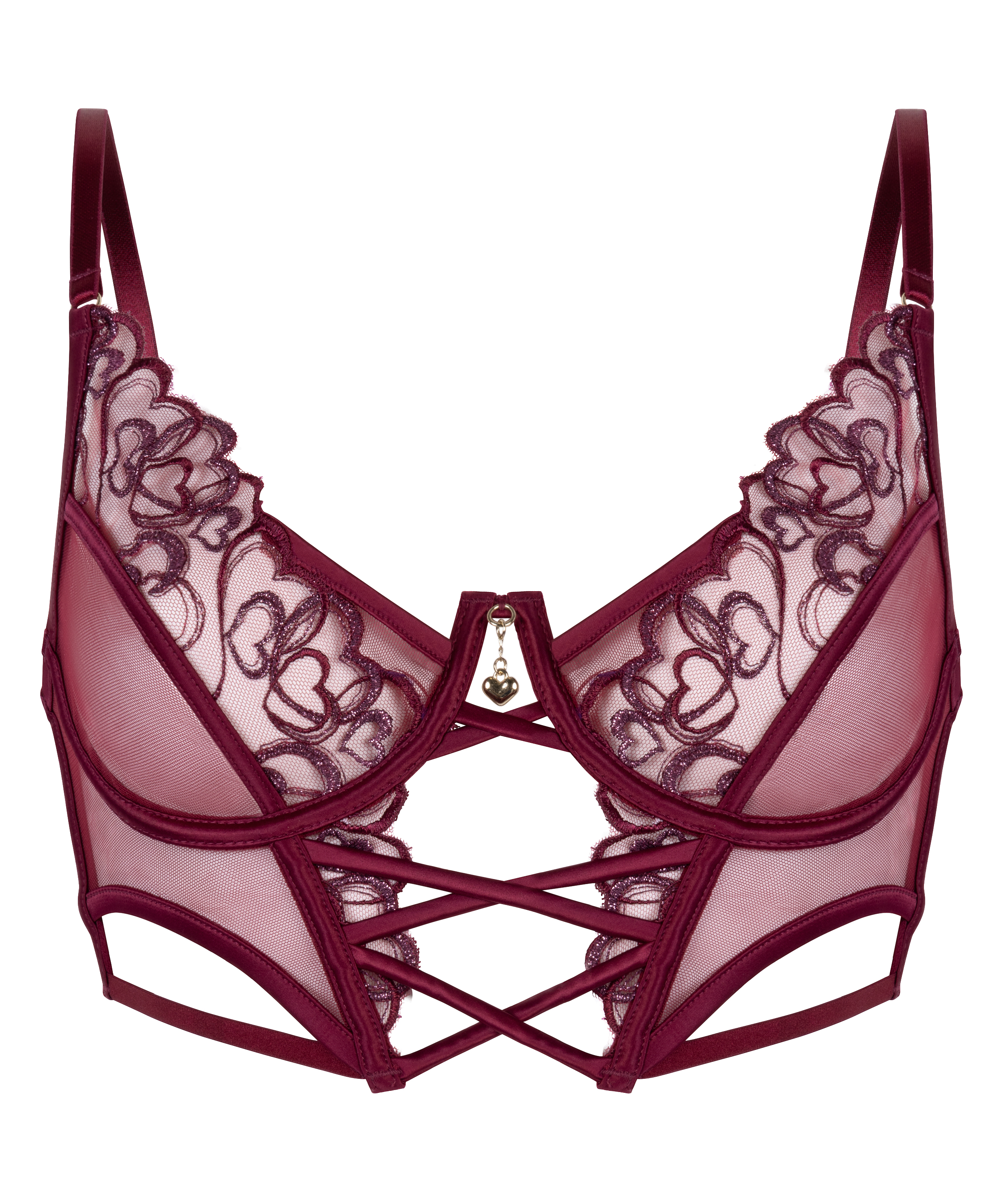 Op zoek naar een bh die zowel sexy als stijlvol is? Deze longline beugel-bh brengt de show met zijn gekruiste bandjes en luxe kant. De bloemenborduursels zorgen voor een flirterige vibe, terwijl de charm aan de voorkant net dat beetje glamour toevoegt. Met de perfecte lift en een gedurfd design is deze bh jouw nieuwe favoriet om je onweerstaanbaar en zelfverzekerd te voelen!
