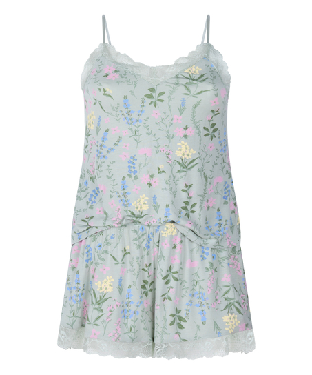 Lekker slapen doe je in dit comfortabele pyjama setje! Hij is afgewerkt met leuke kanten details. Combineer met een leuke kimono of badjas voor een super comfortabele outfit!