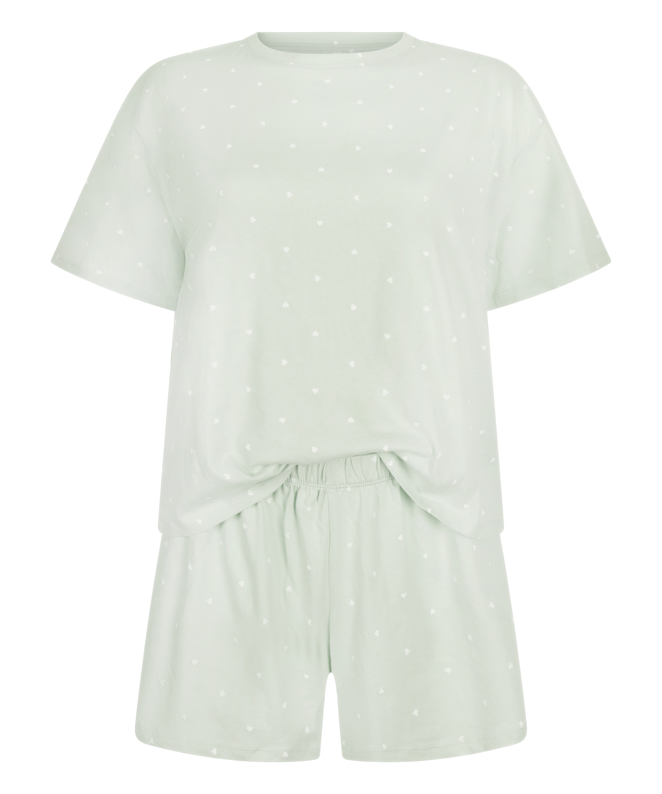 Blijf koel en comfortabel met deze katoenen pyjamaset. Bestaat uit een ontspannen T-shirt met korte mouwen en bijpassende short, beide met een wijde pasvorm voor ultiem comfort. Gemaakt van katoen, voelt licht aan op de huid en is perfect voor warme nachten of om in te loungen. De elastische tailleband van de short zorgt voor een flexibele en comfortabele pasvorm.