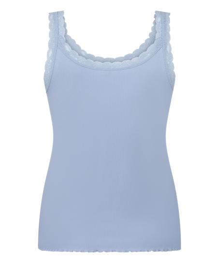 Voeg een vleugje elegantie toe aan je dagelijkse pyjamastijl. Gemaakt van zachte, rekbare ribstof die comfortabel om het lichaam sluit en een flatterend, aansluitend silhouet biedt. De kanten details geven een vrouwelijke, romantische uitstraling die dit eenvoudige stuk naar een hoger niveau tilt. Perfect om in te loungen of in te slapen.
