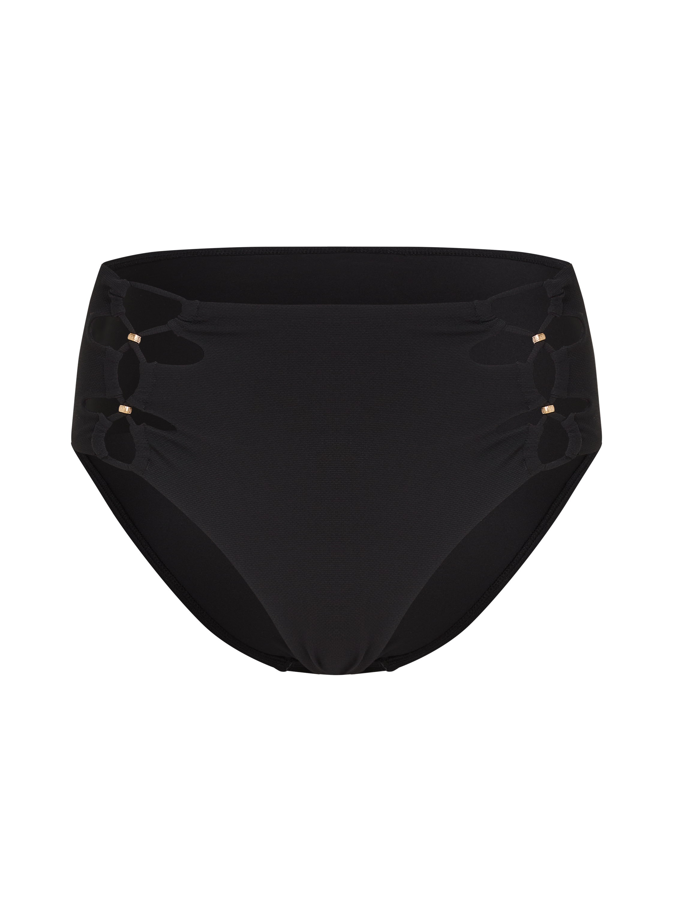 Treed binnen in de wereld van retro glamour met ons prachtige bikinibroekje met hoge taille! Dit op vintage geïnspireerde kledingstuk heeft een flatterende hoge taille die je figuur op de juiste plekken accentueert. Het verfijnde kanten ontwerp aan de zijkanten voegt een vleugje vrouwelijkheid toe en is versierd met luxe goudkleurige kralen. Combineer het met je favoriete bikinitopje voor een tijdloze en elegante look!