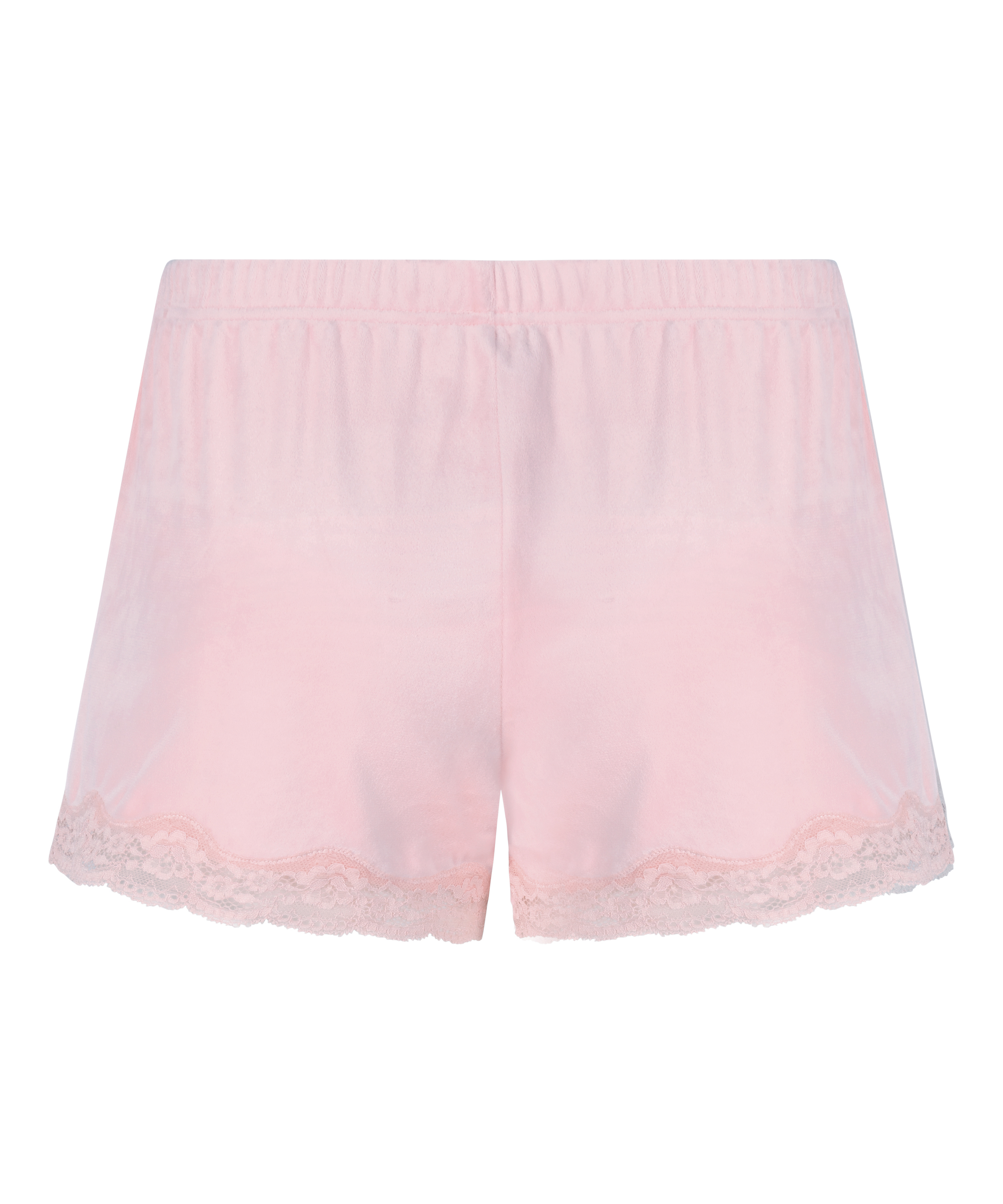 Geniet van comfort met onze velours short, perfect om in stijl te loungen. Deze short is gemaakt van een zachte, fluweelachtige stof en zijn even comfortabel als mooi. De verfijnde kanten accenten voegen een vleugje elegantie en vrouwelijkheid toe en maken deze knusse essential helemaal af. Ontworpen met een gestreepte tailleband voor een comfortabele, flexibele pasvorm zodat je vrij kunt bewegen.