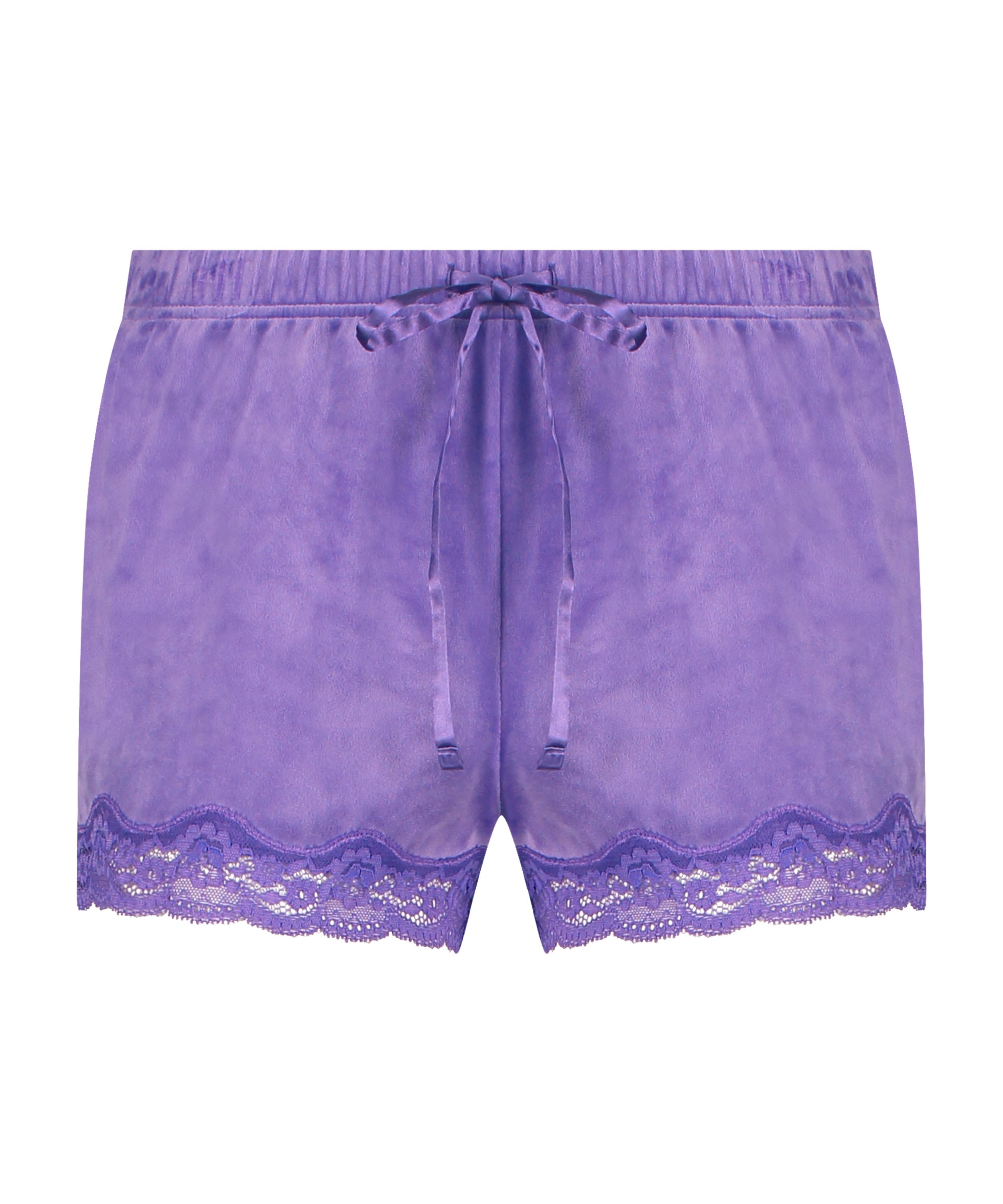 Voel je super sexy en vrouwelijk met deze zachte short aan! De short is gemaakt van een velours stof en is afgewerkt met kant. Combineer met matchende items.