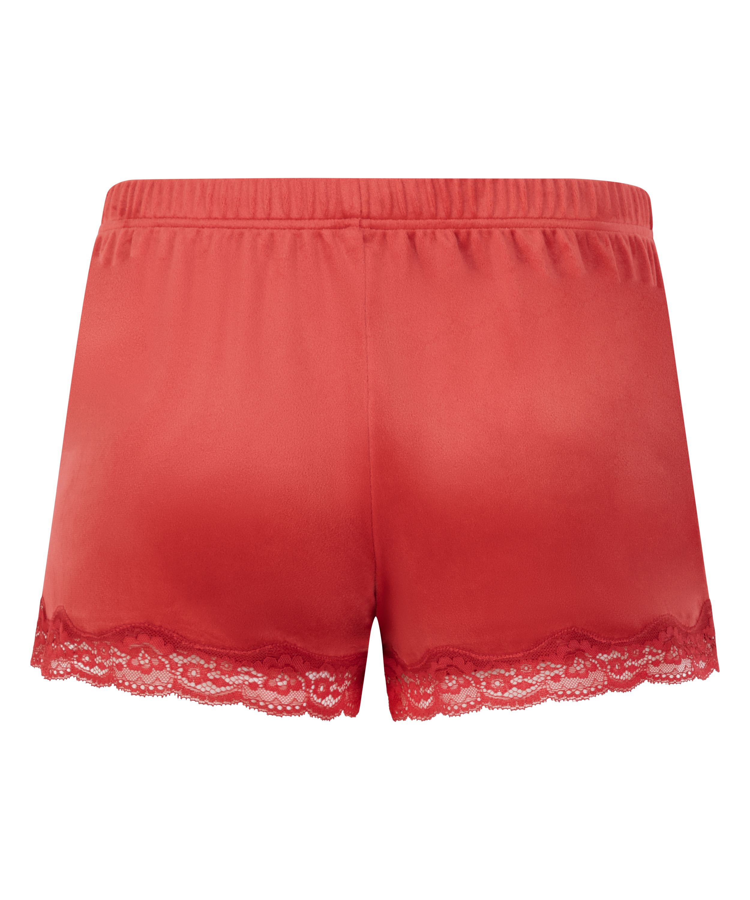 Voel je super sexy en vrouwelijk met deze zachte short aan! De short is gemaakt van een velours stof en is afgewerkt met kant. Combineer met matchende items.