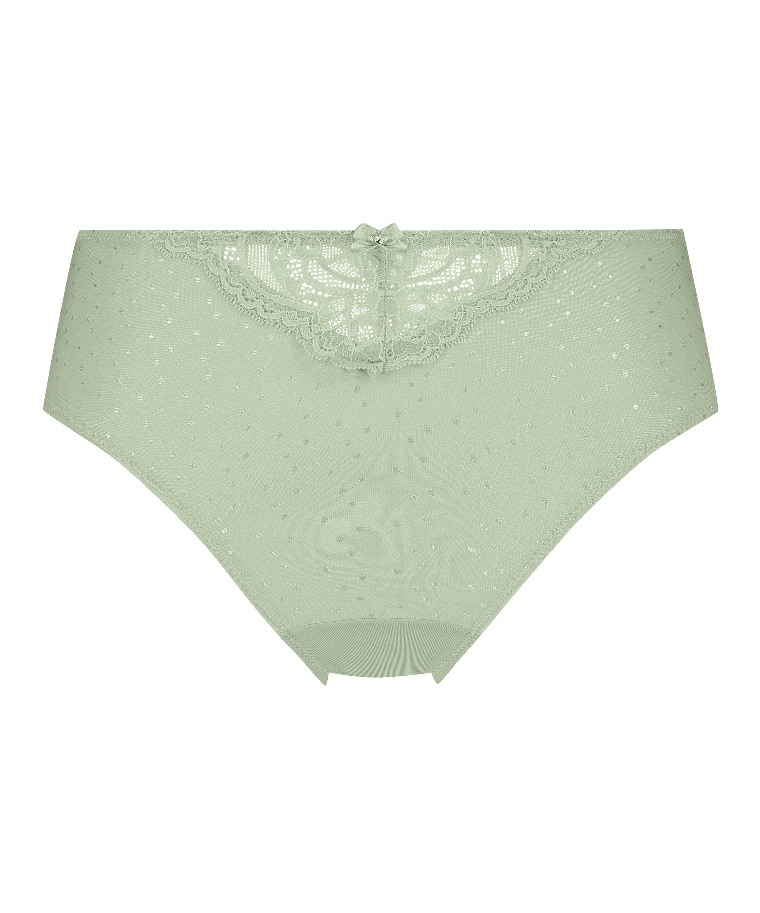 Sexy en dankzij de hoge pasvorm zit de slip ook nog eens ontzettend comfortabel. De slip is aan de voorzijde uitgevoerd in microstof en deels in kant.