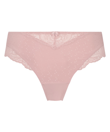 Sexy en dankzij de hoge pasvorm zit de slip ook nog eens ontzettend comfortabel. De slip is aan de voorzijde uitgevoerd in microstof en deels in kant.