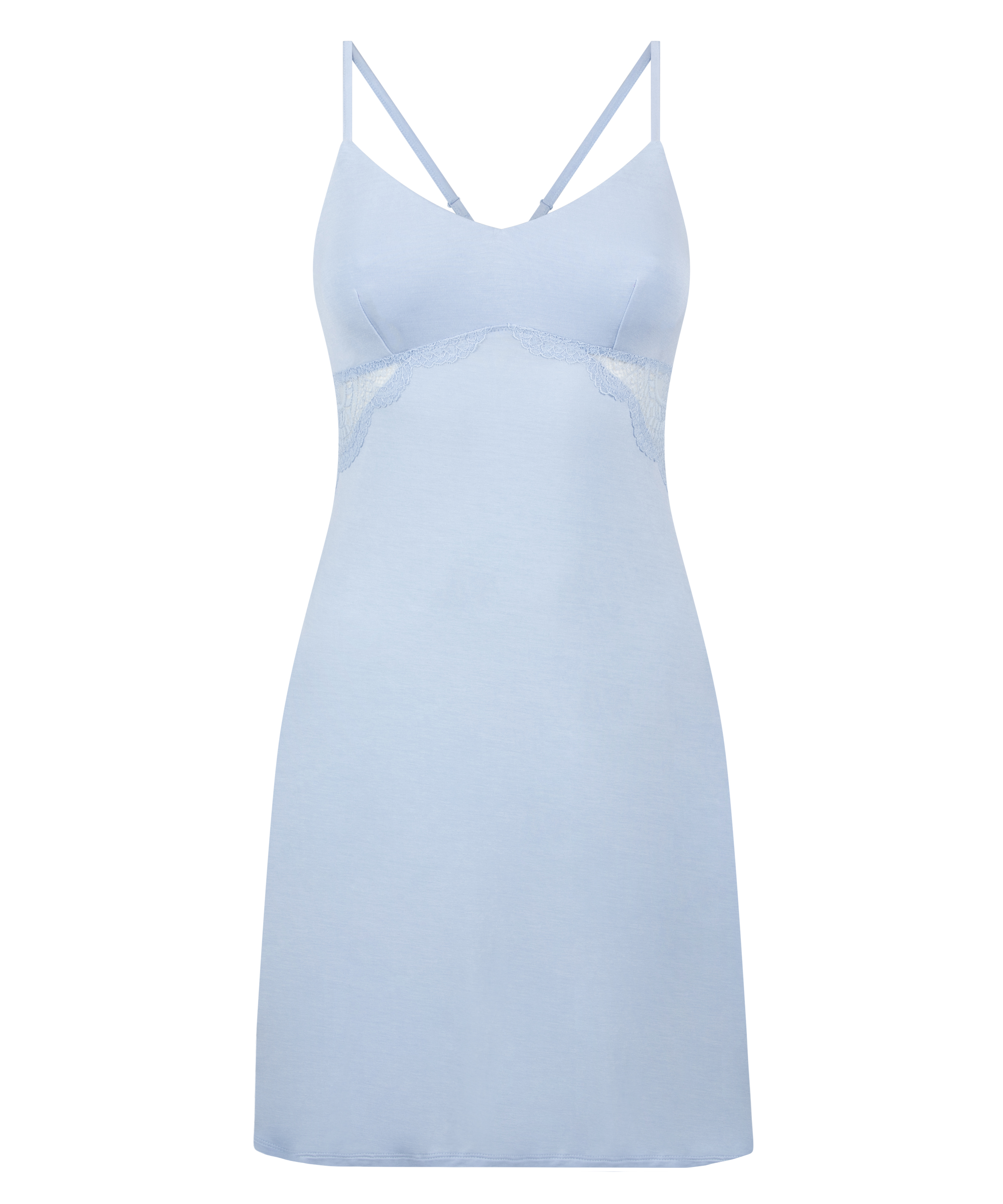 Voel je sexy in deze superzachte slipdress! Hij heeft kanten versieringen onder de borsten en op de rug. Combineer hem met een kimono voor een heerlijk comfortabele set!
