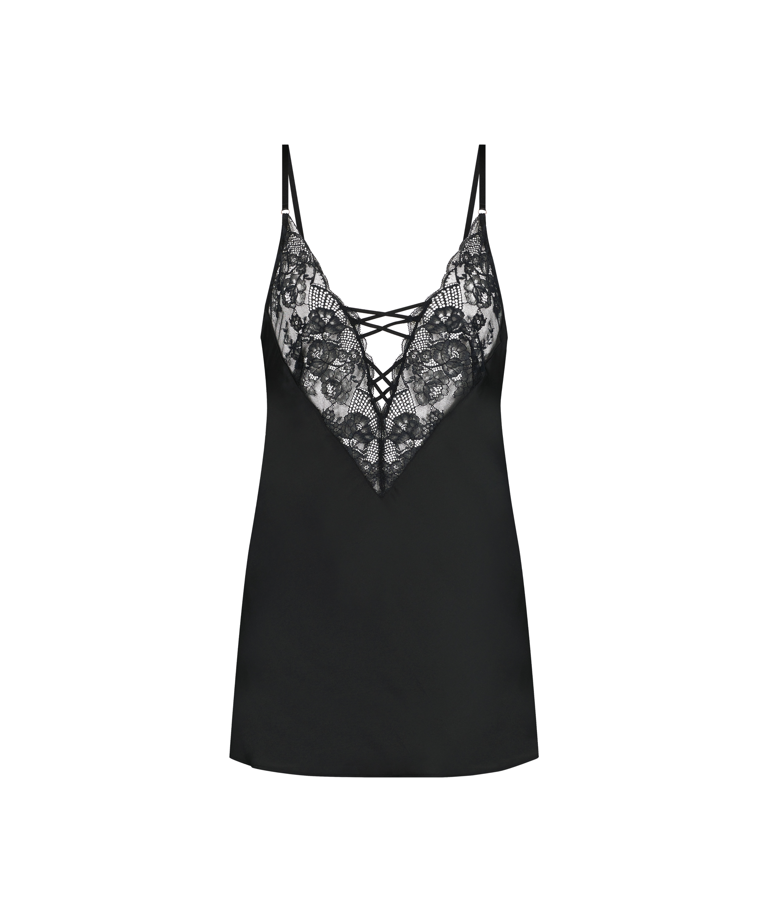 Zie er op je best uit in deze slipdress! Hij heeft een satijnen look-and-feel en is versierd met kanten bloemmotief en bandjes. Combineer hem met een kimono!