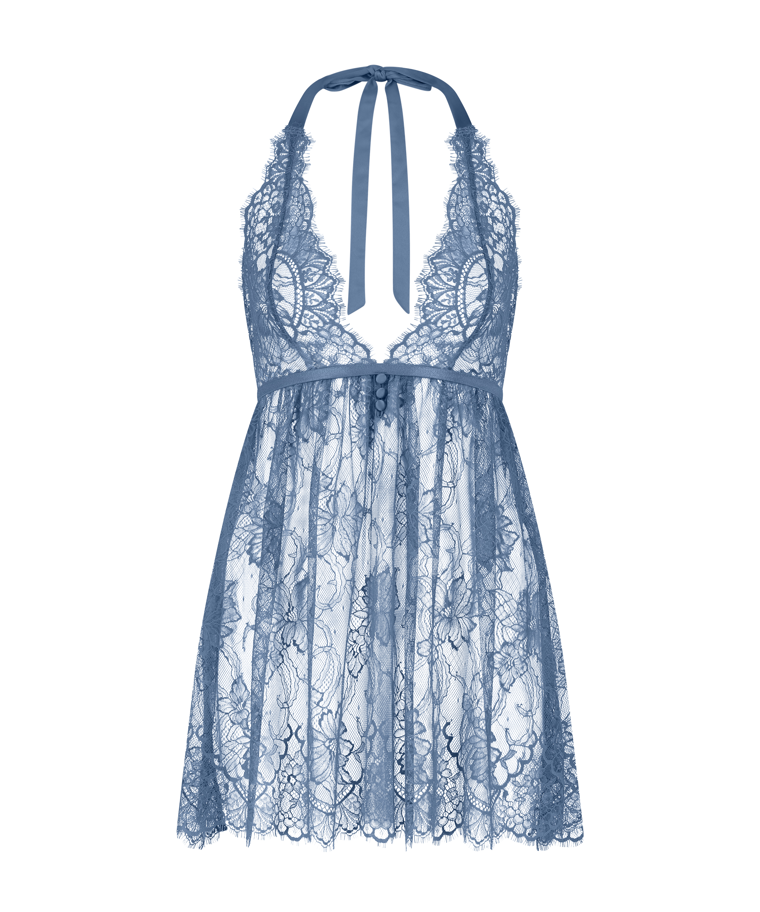 Voel je sexy in deze slipdress van doorlopend kant! Hij heeft een semi-transparante uitstraling met ongevulde cups. Hij is verder voorzien van een romantische, makkelijk te dragen band om de hals voor een eenvoudige sluiting. Combineer hem met een bijpassende slip! Onderdeel van onze Noir-collectie.