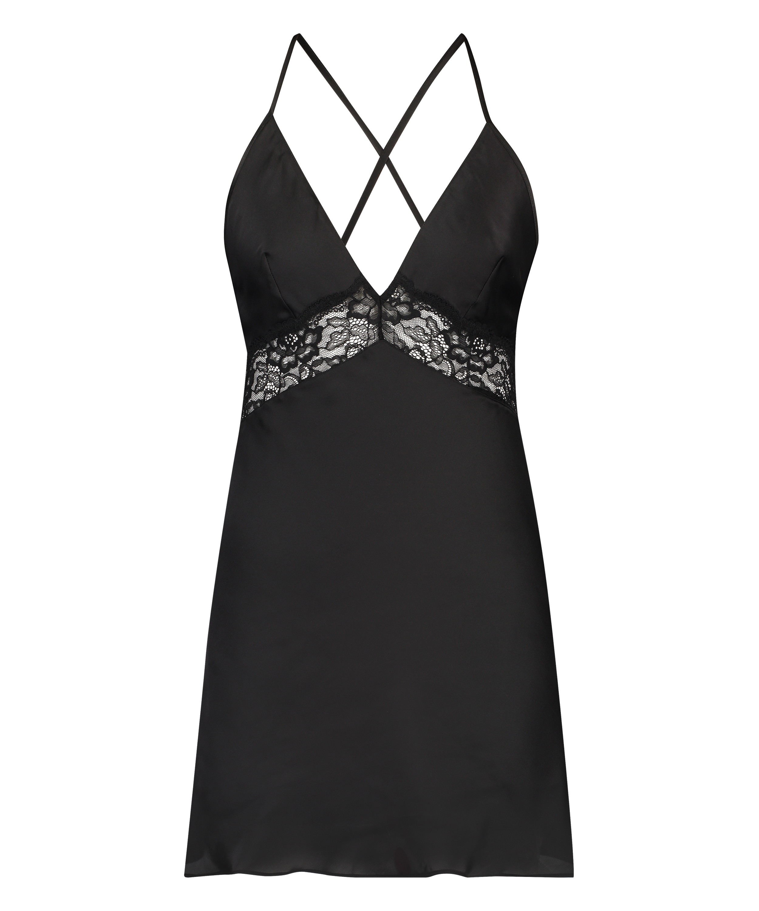 Deze prachtige slipdress wil je hebben! Hij heeft kanten details en een diepe v-hals. Sexy en comfortabel tegelijk!